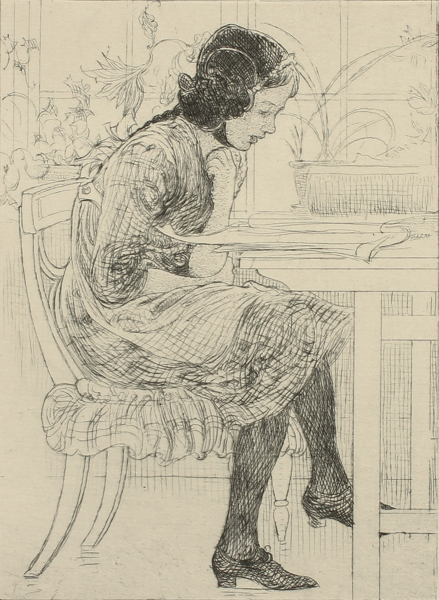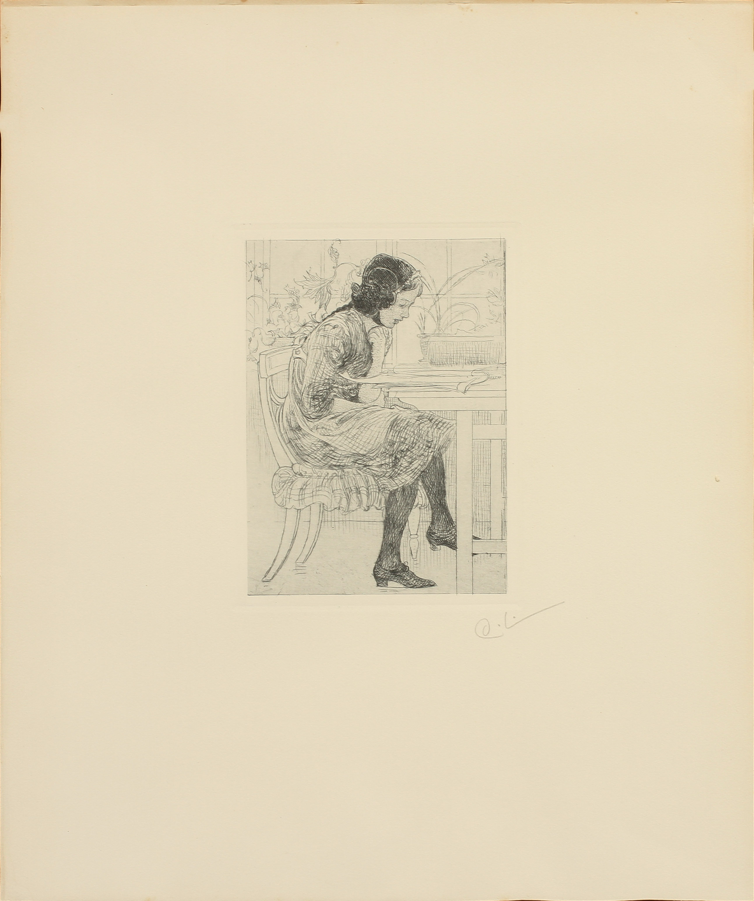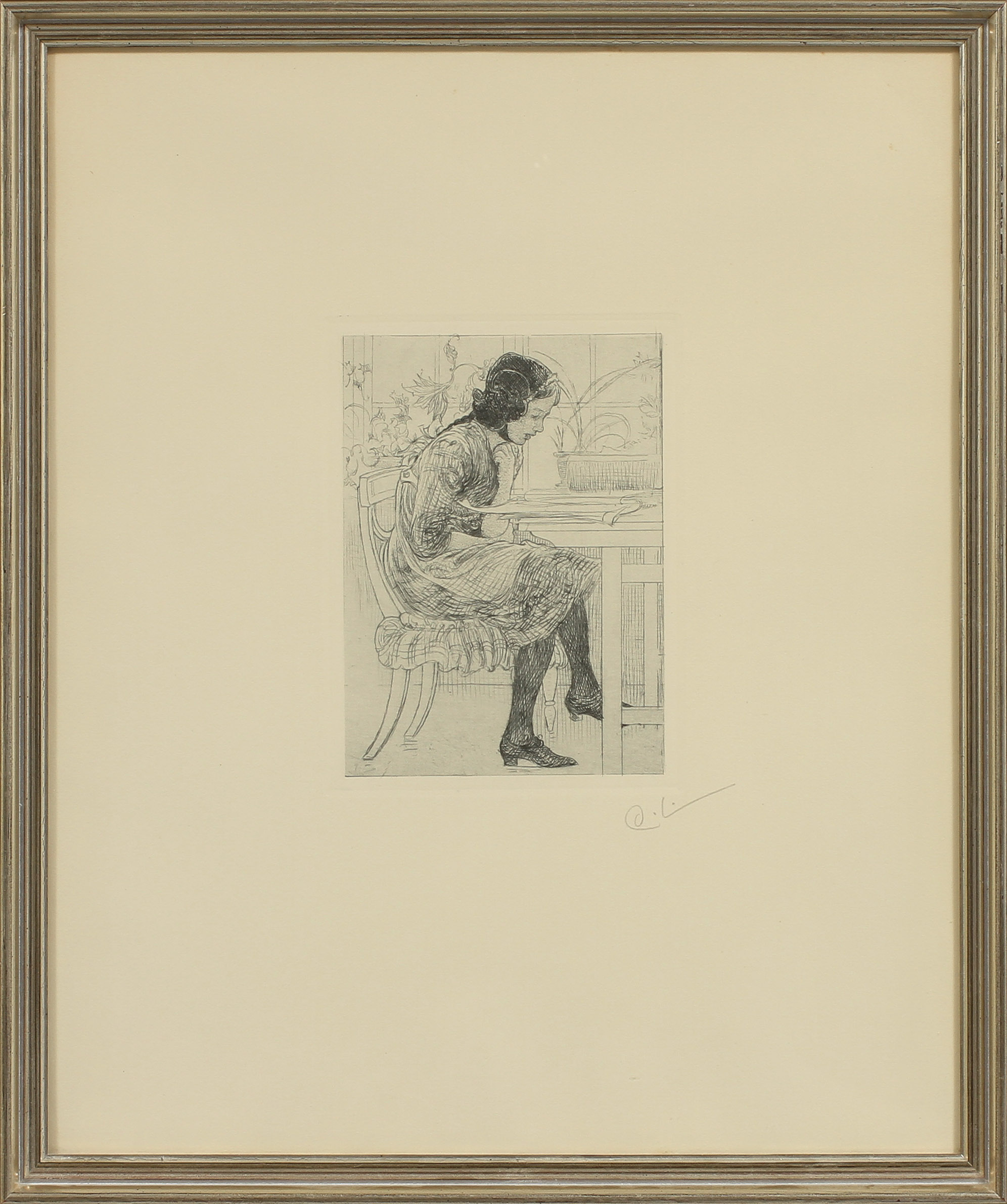 303171. CARL LARSSON. "Lektyr" 1916. Etsning, monogramsignerad.