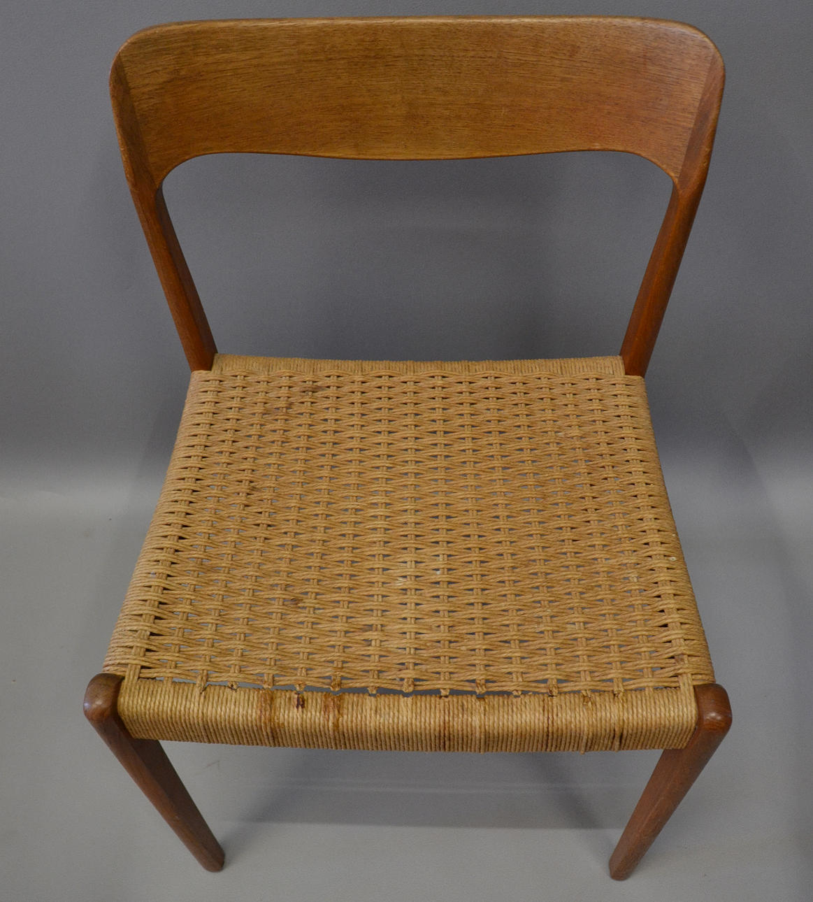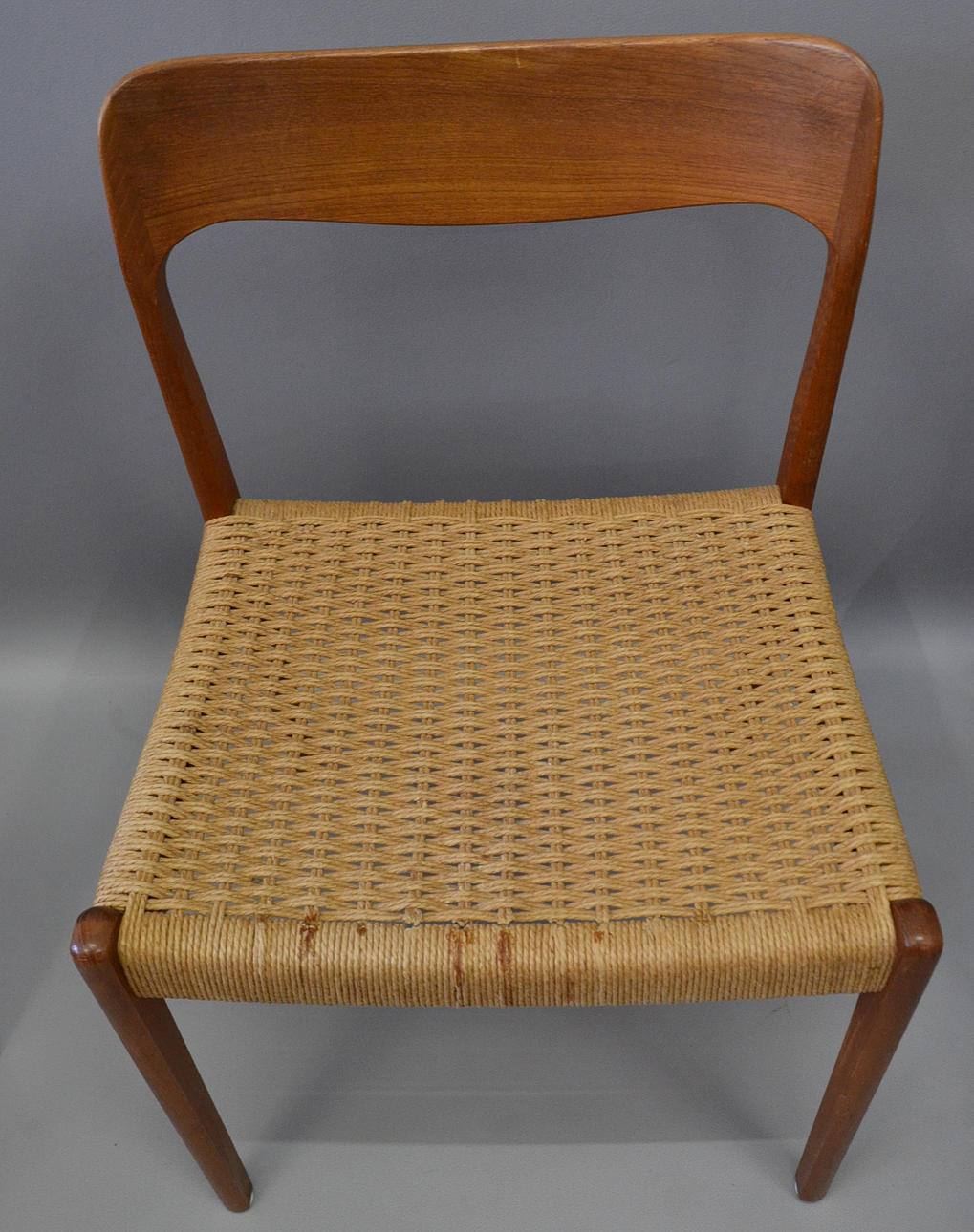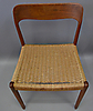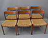 Starkare tecken på slitage på flätan 5 stolar har en trasig fläta på framsidan. Fläckar på platser.