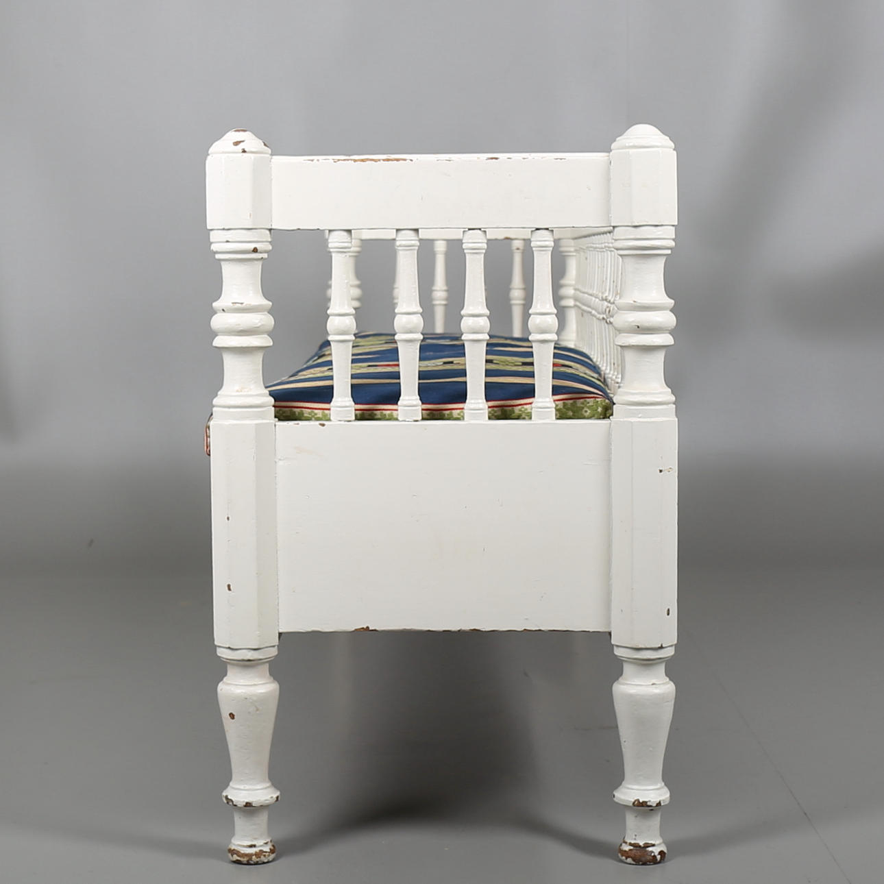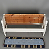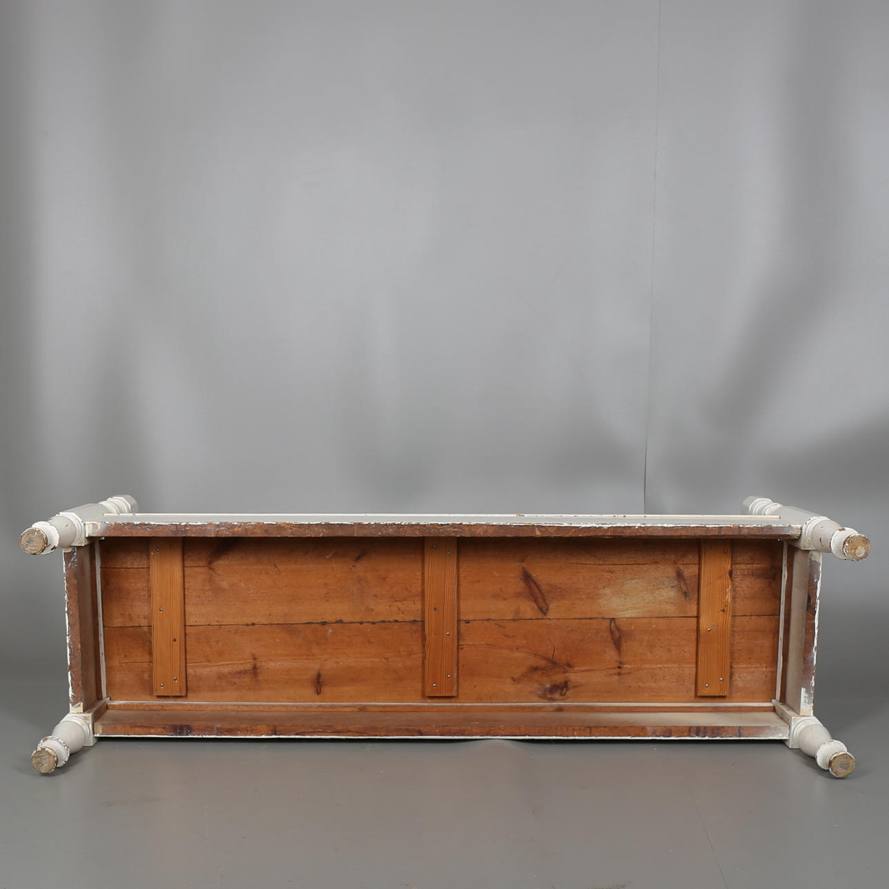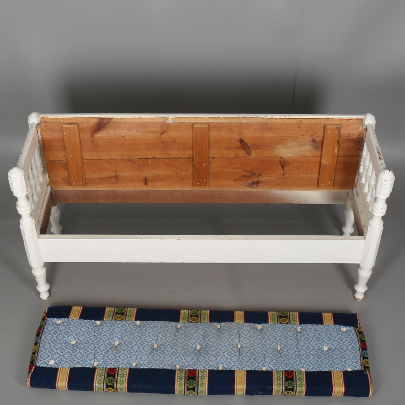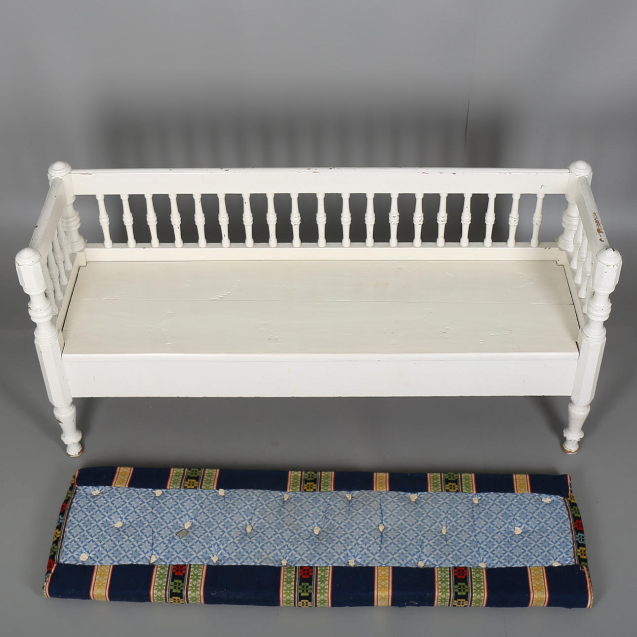 Genombruten ryggbricka Möbelspikad klädsel Stoppad lös sittdyna med vävt ylletyg Höjd 66 cm Längd 137 cm Sittdjup 63 cm.