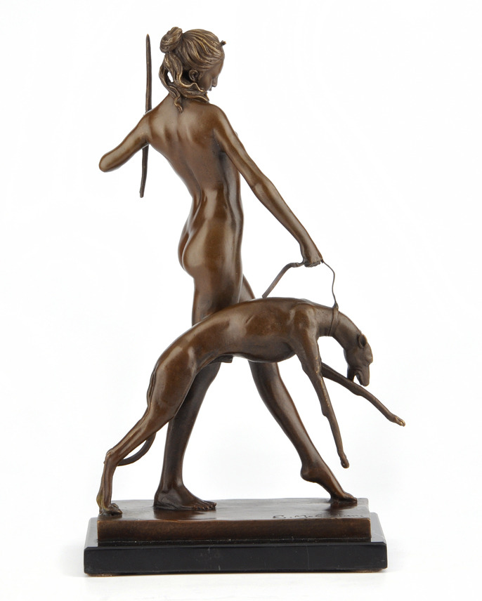 303704. EDWARD FRANCIS MCCARTAN. EFTER. Amazon med hund. Bronsfigur på marmorbas.