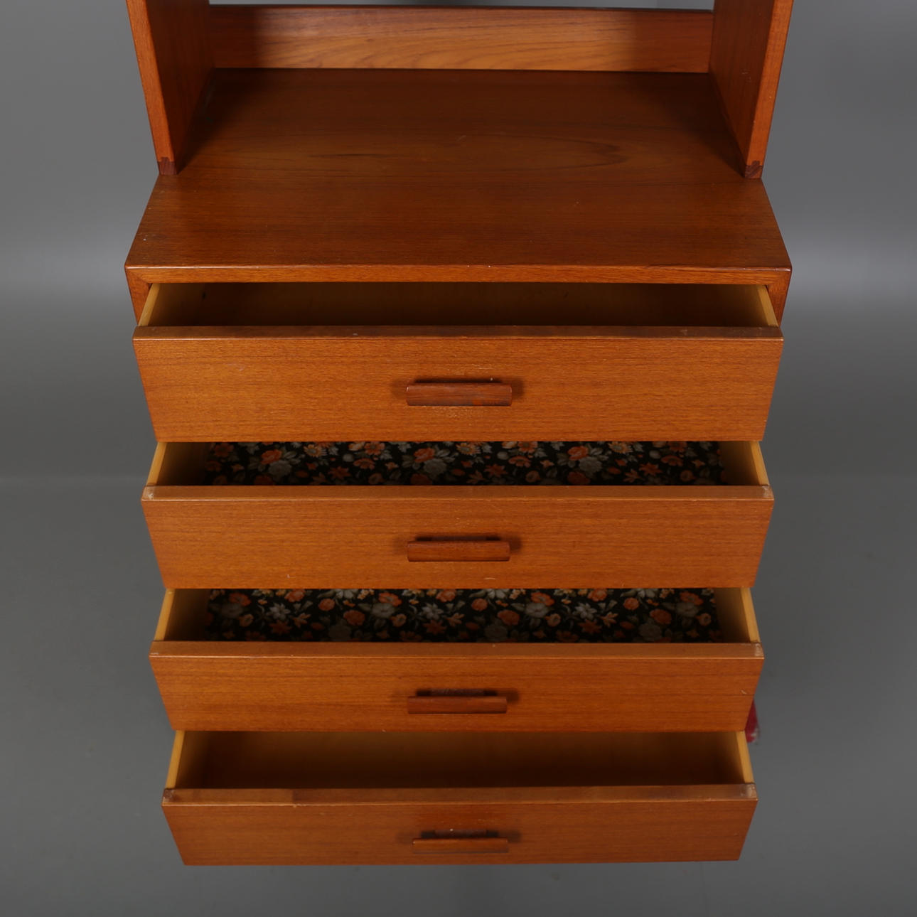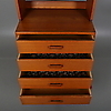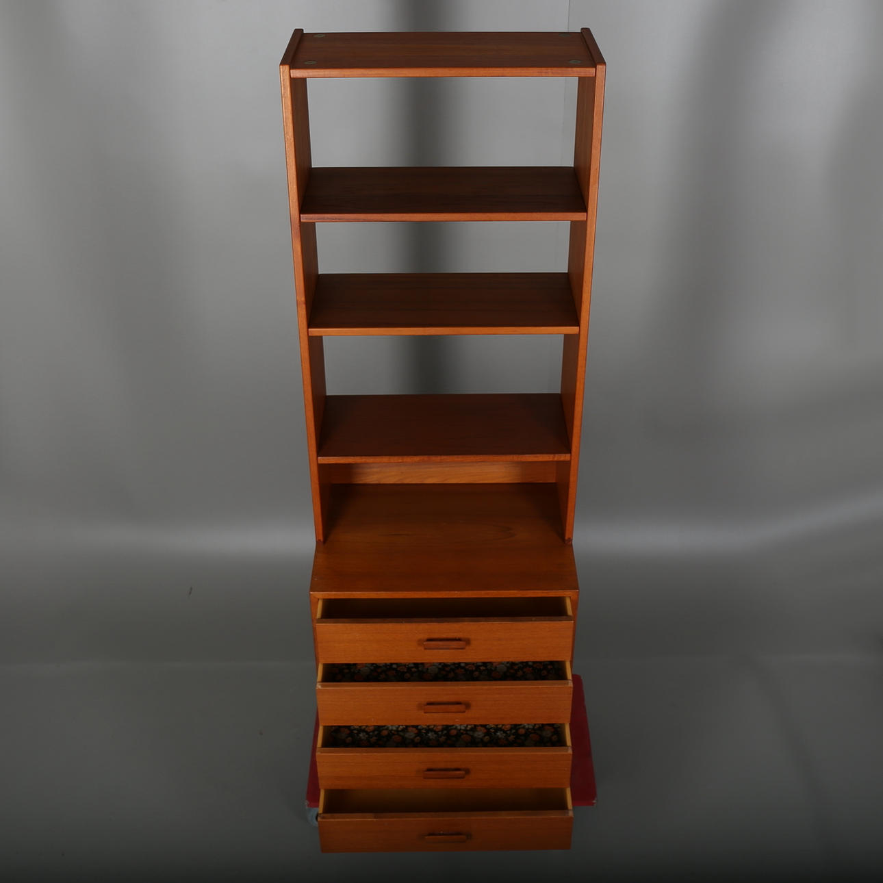 Bokhylla bestående av flyttbar överhylla samt hurts med 4 lådor