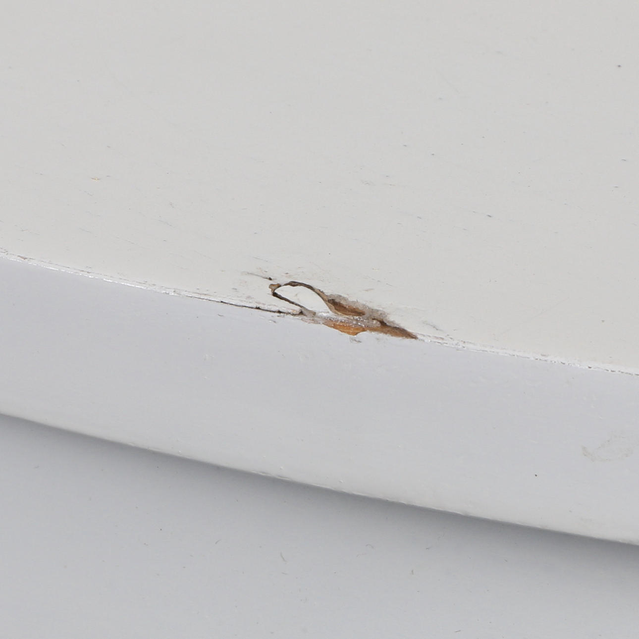 Bruksslitage, skador, slagmärken, färgsläpp, saknar iläggsskivor.