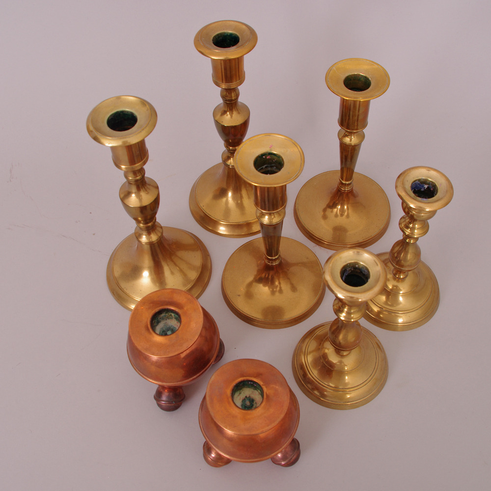 303952. LJUSSTAKAR, 4 par, mässing/koppar.
