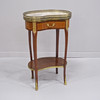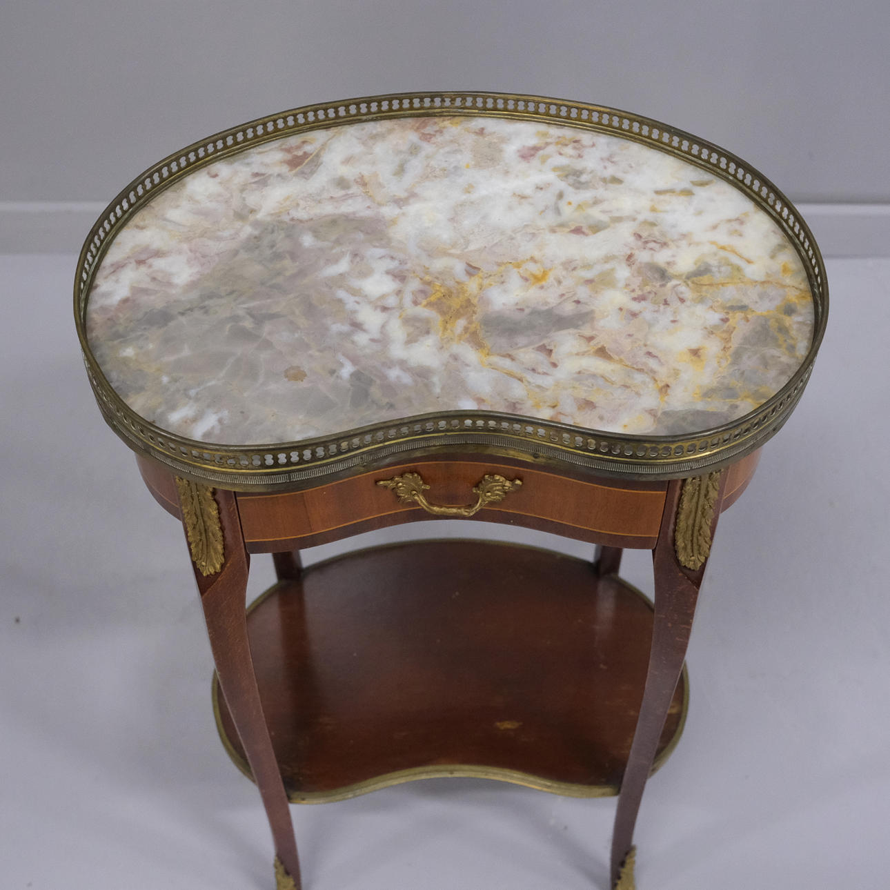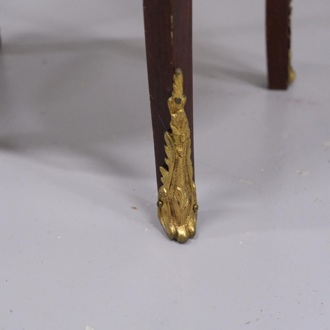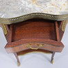 Bronserade beslag, stenskiva samt gallerkant, låda. Höjd 71cm, längd 44cm, bredd 26cm.