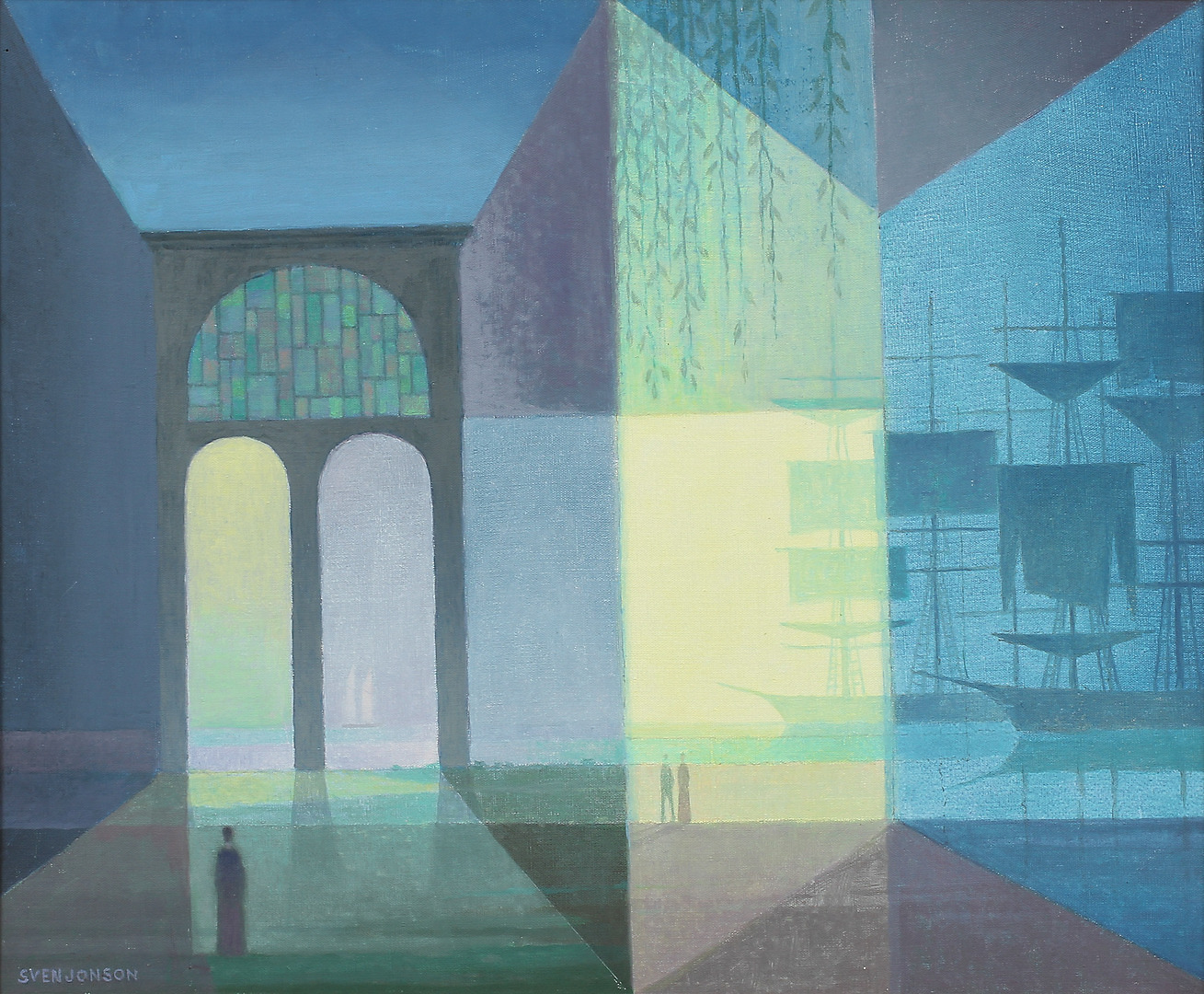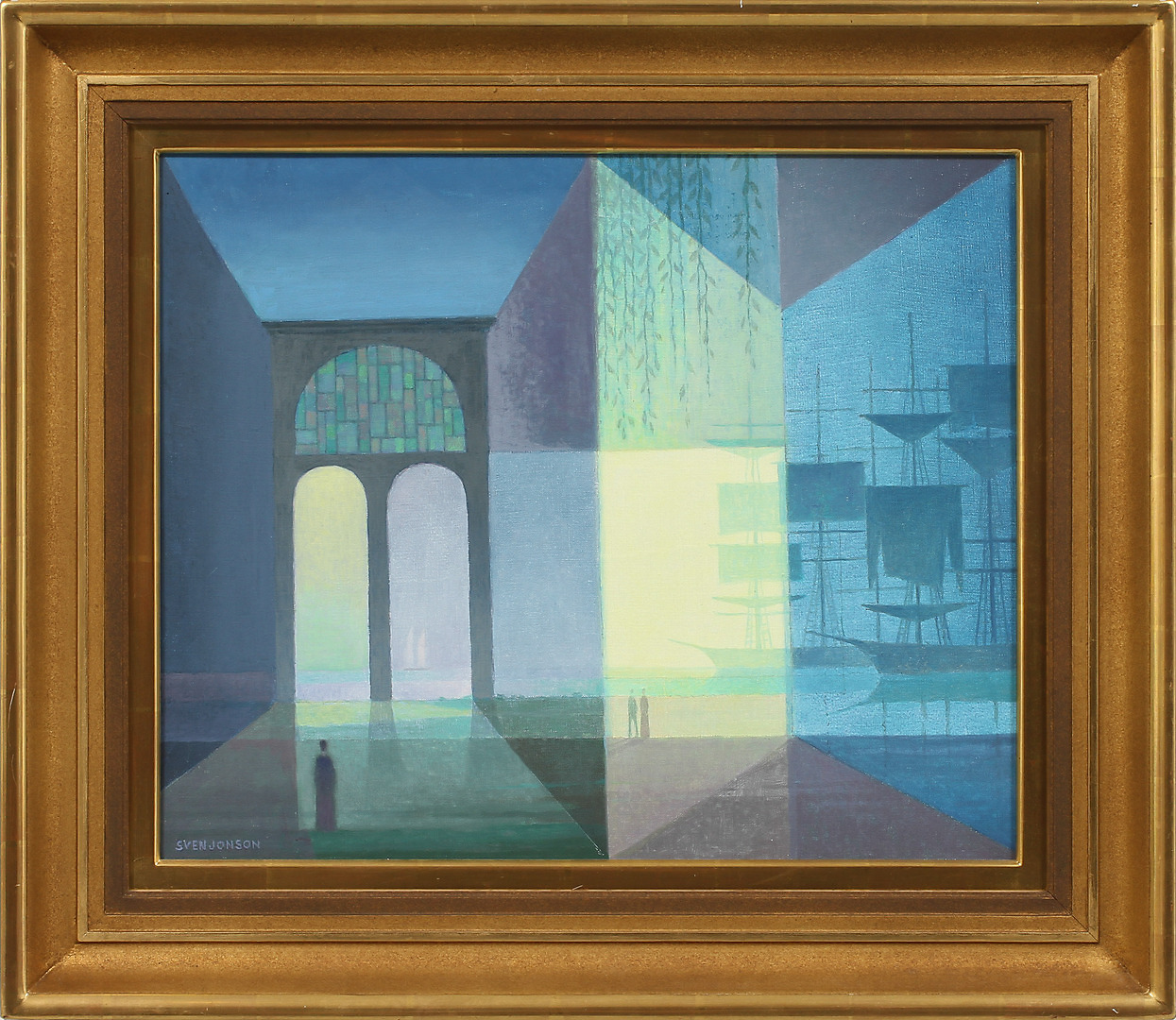 304182. SVEN JONSON (1902-1981). "Natthamn". Olja på duk.