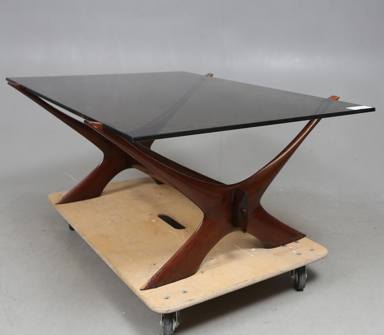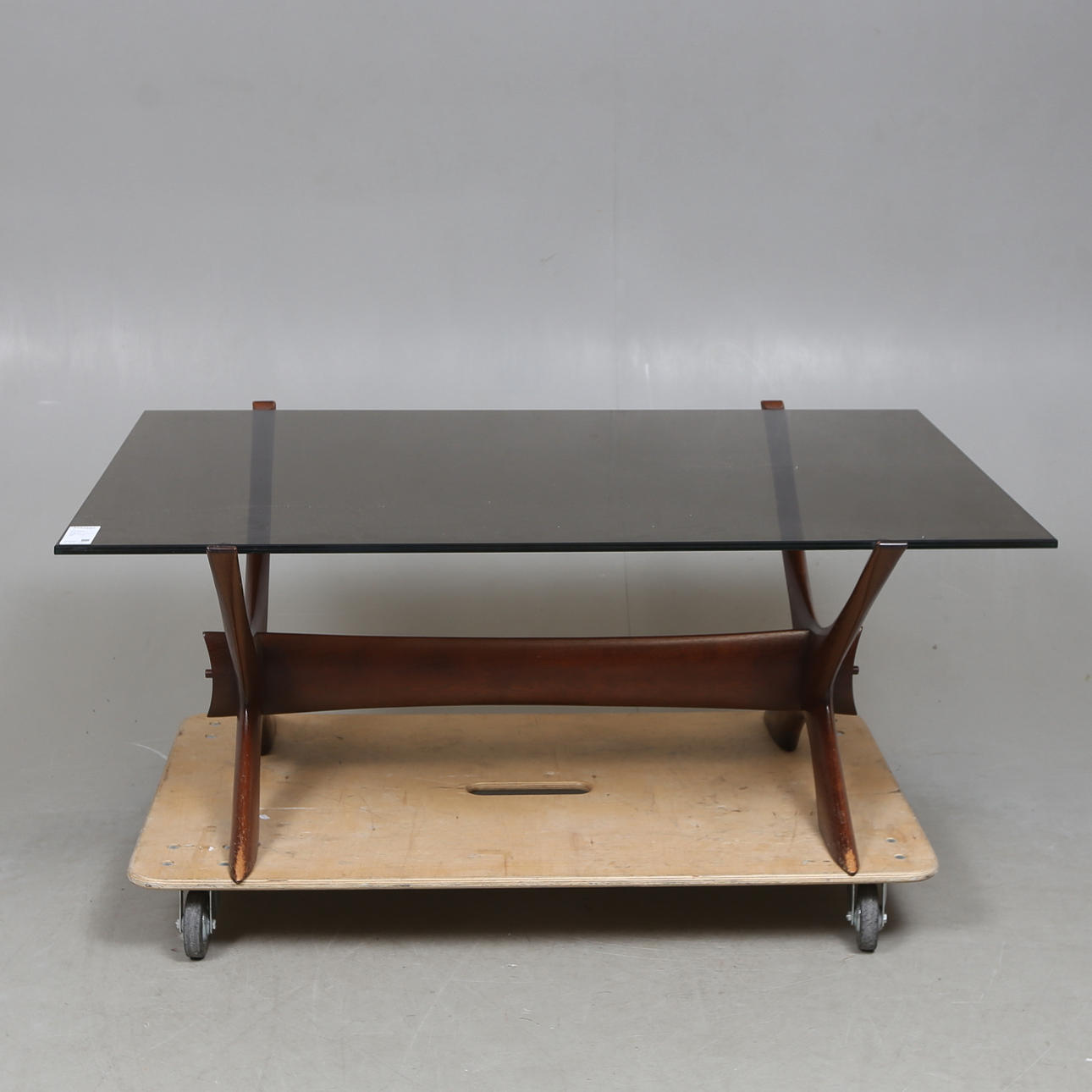 Benställning i trä. Skiva i glas.