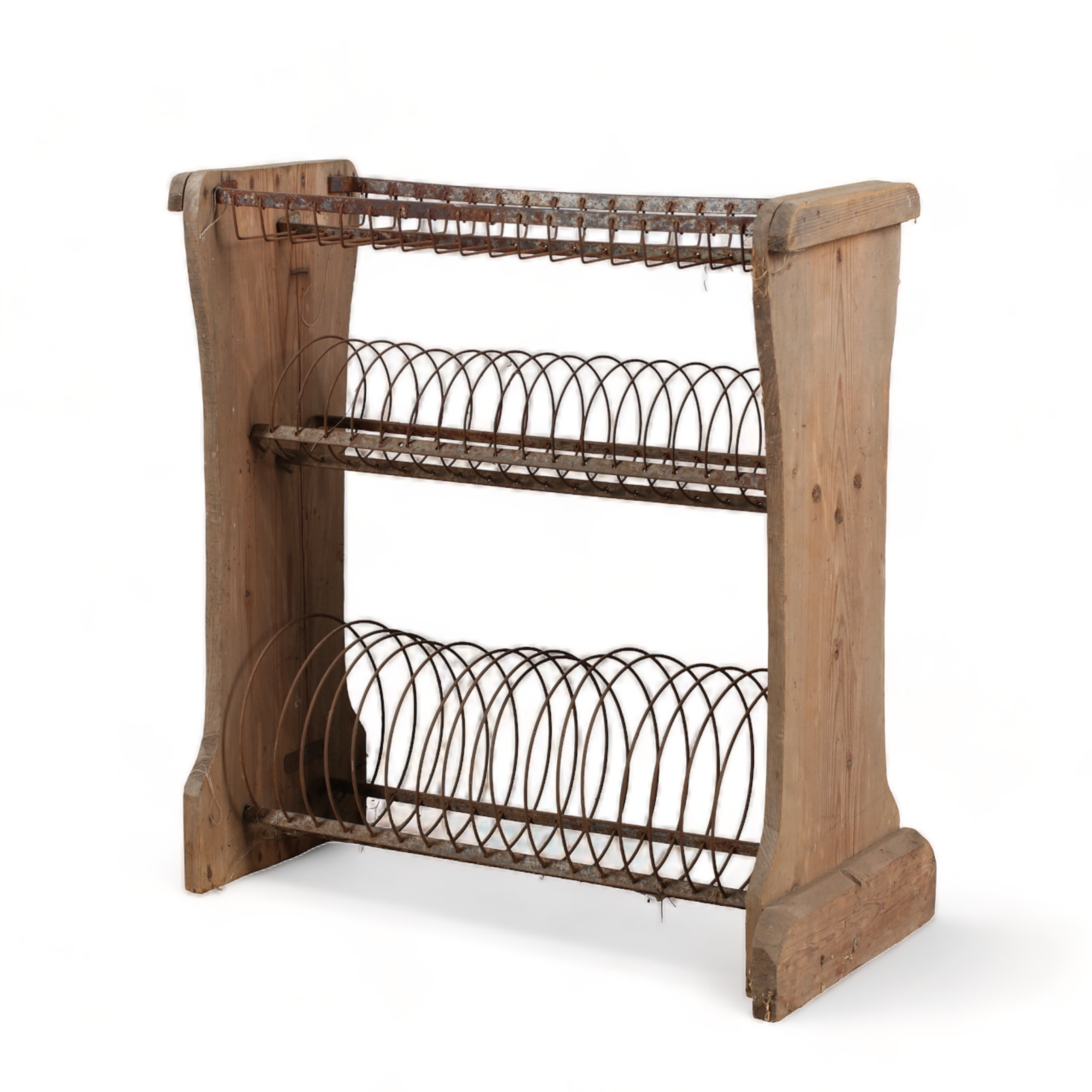 3043705. DISKSTÄLL, trä/metall, 18/1900-talet.