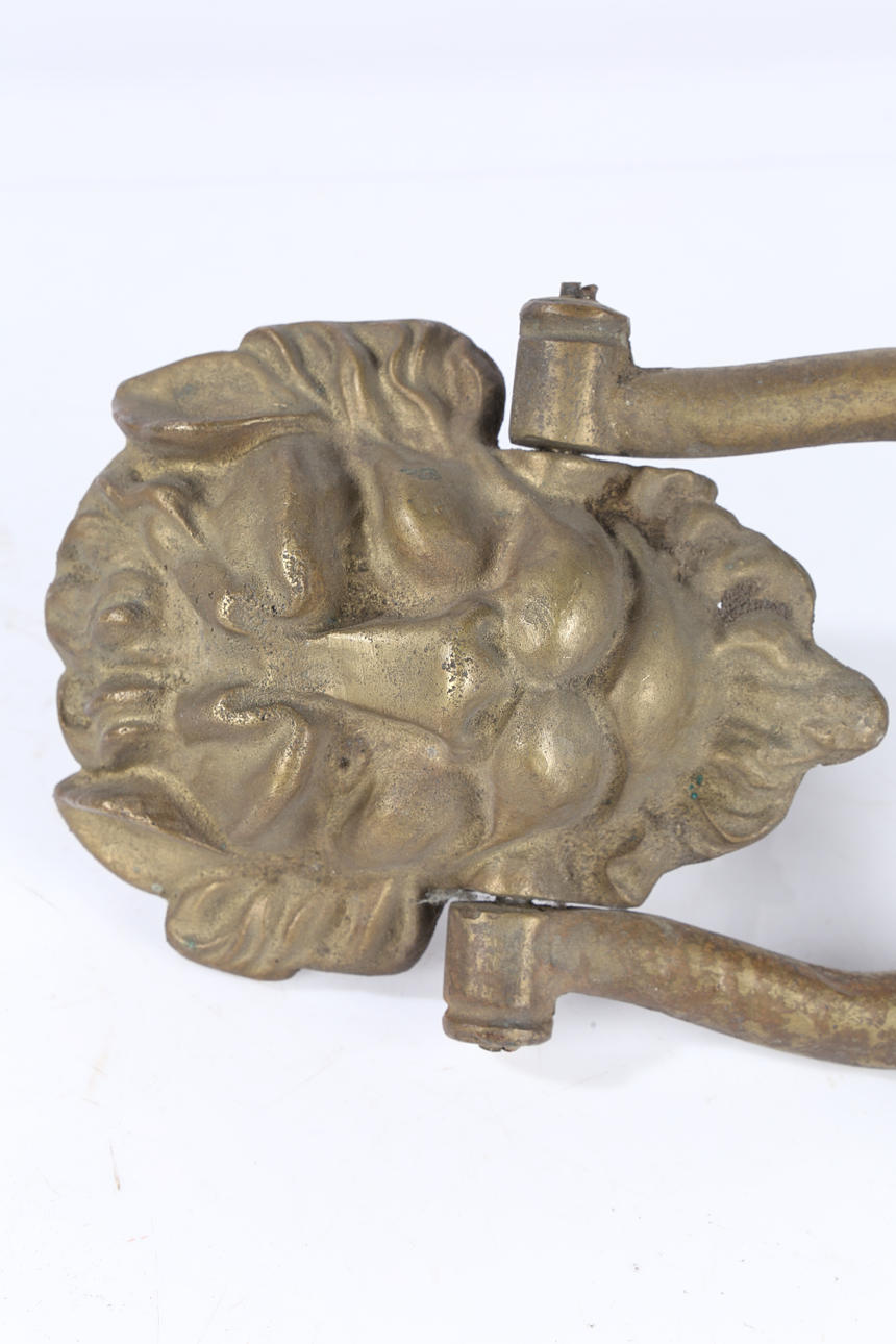 EN DÖRRKNACKARE FÖR LEJONMASK I MÄSSING.