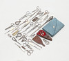 1800-talet och senare, bestående av, ett par silverhanterade sysaxar i tillhörande läderfodral, en silverhanterad knappkrok med utsmyckad dekoration, ett par Singer sysax i rostfritt stål, ett par Robus tyska sysax, ett par fällbara sysaxar, en Wood Milne Rubber Heels reklamknappkrok och en mängd andra knappkrokar och sysax i varierande grad (cirka 30).