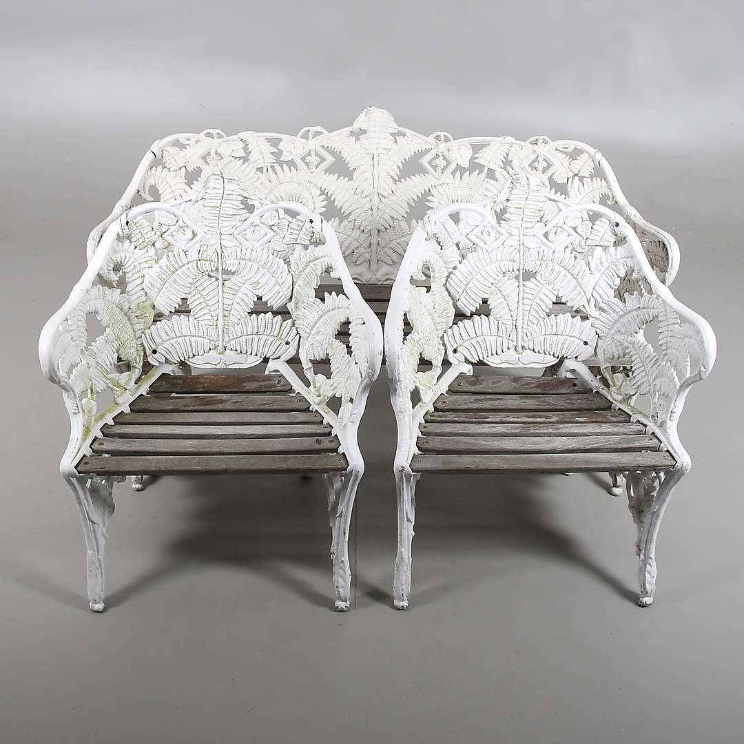 304738. TRÄDGÅRDSGRUPP, 3 delar, metall, Ormbunksmodell, 1900-talets mitt.