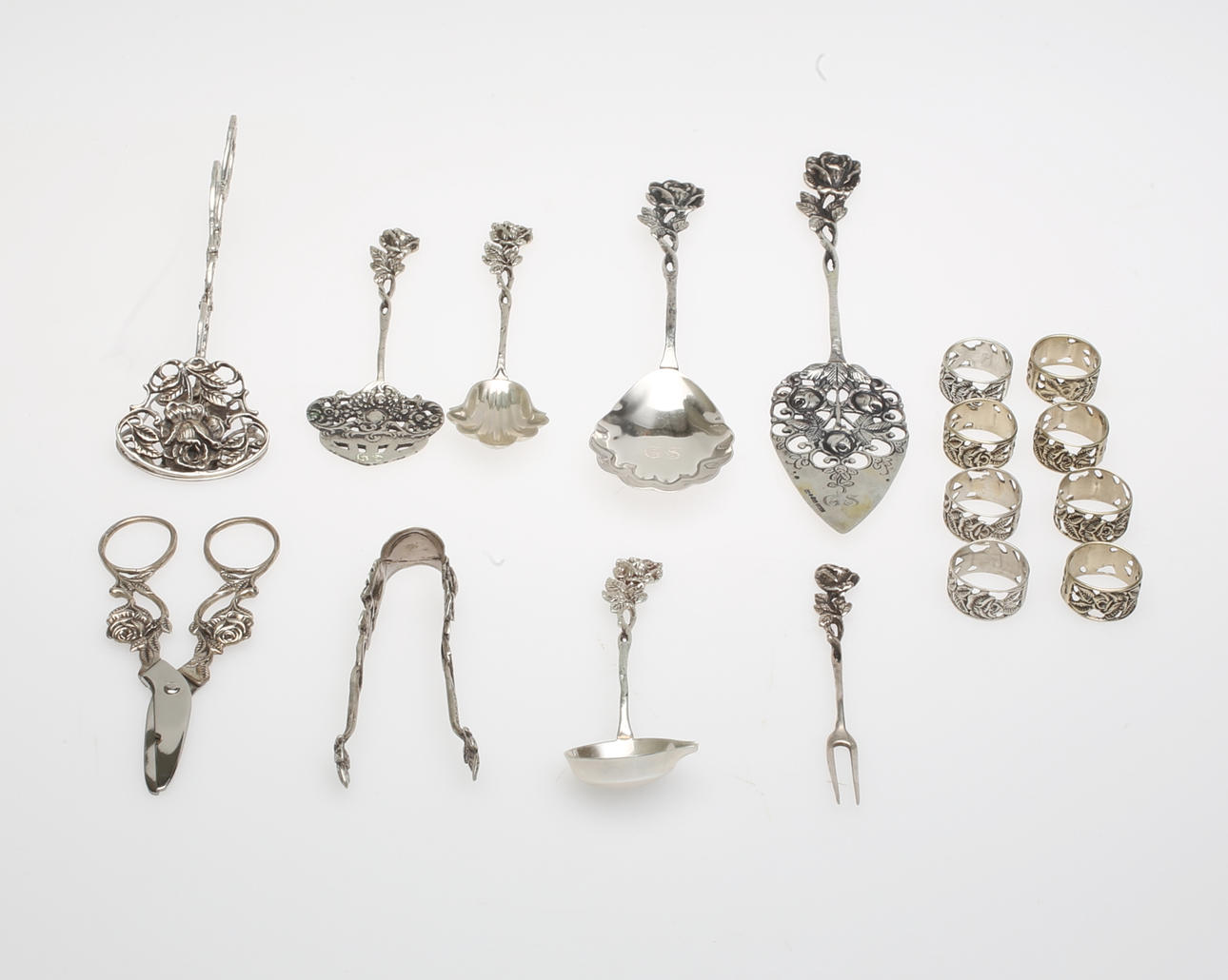 Diverse silverbestick samt servettringar. Storlekar mellan 2,5 - 20 cm. Vikt 275 gram.