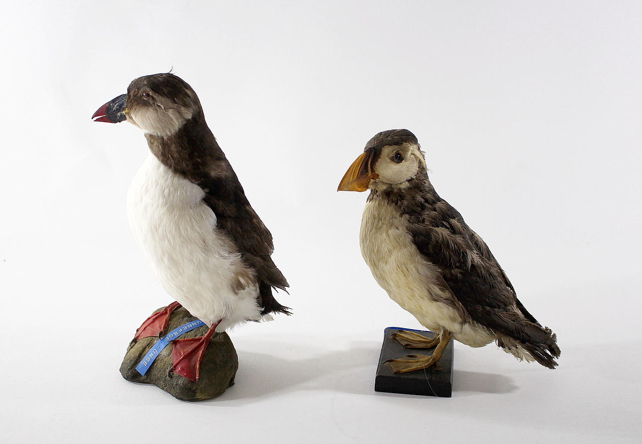 LUNNEFÅGEL, uppstoppad, 2 st.