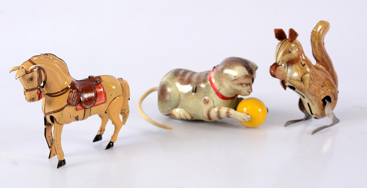 Katt längd 10 cm. Häst Höjd 7,5 cm. Längd 8 cm. Ekorre. Höjd 8 cm.