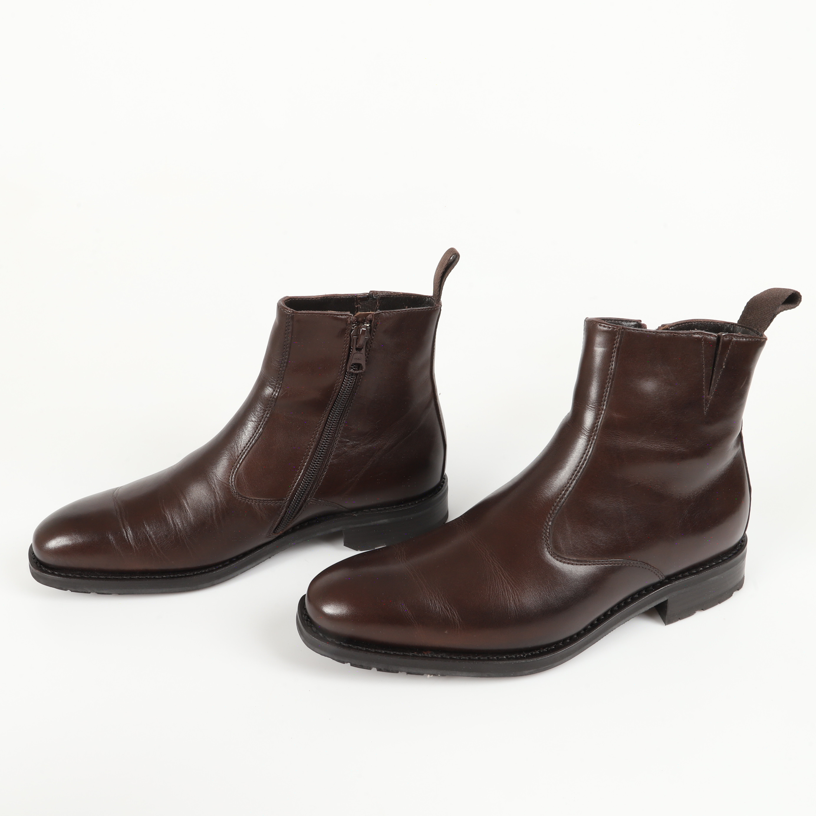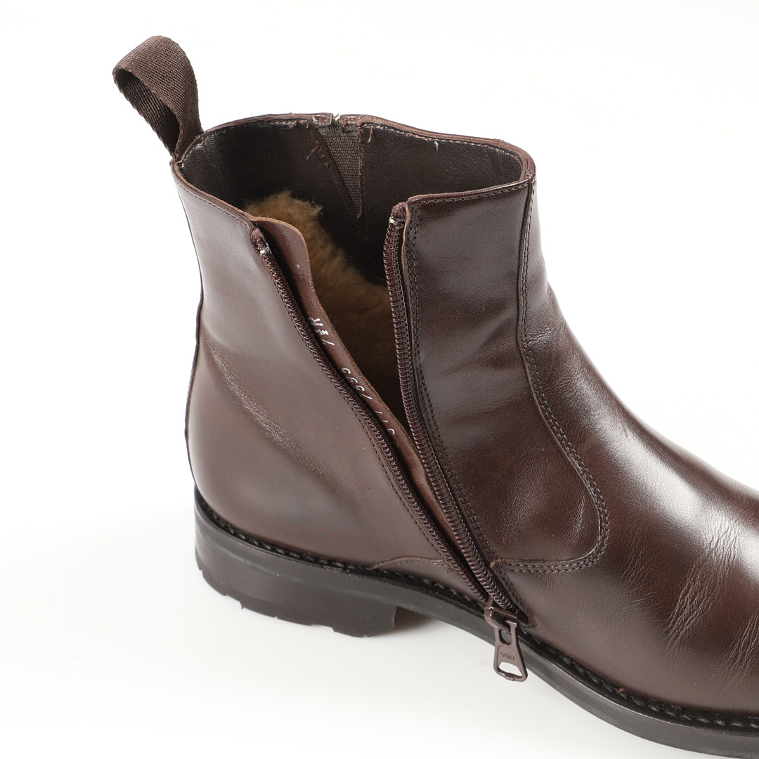 3051177. JOHN BROMMEL´S. Vinterboots, brunt skinn med pälsfoder, England.