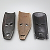 305167. MASKER (3), trä, Afrika.