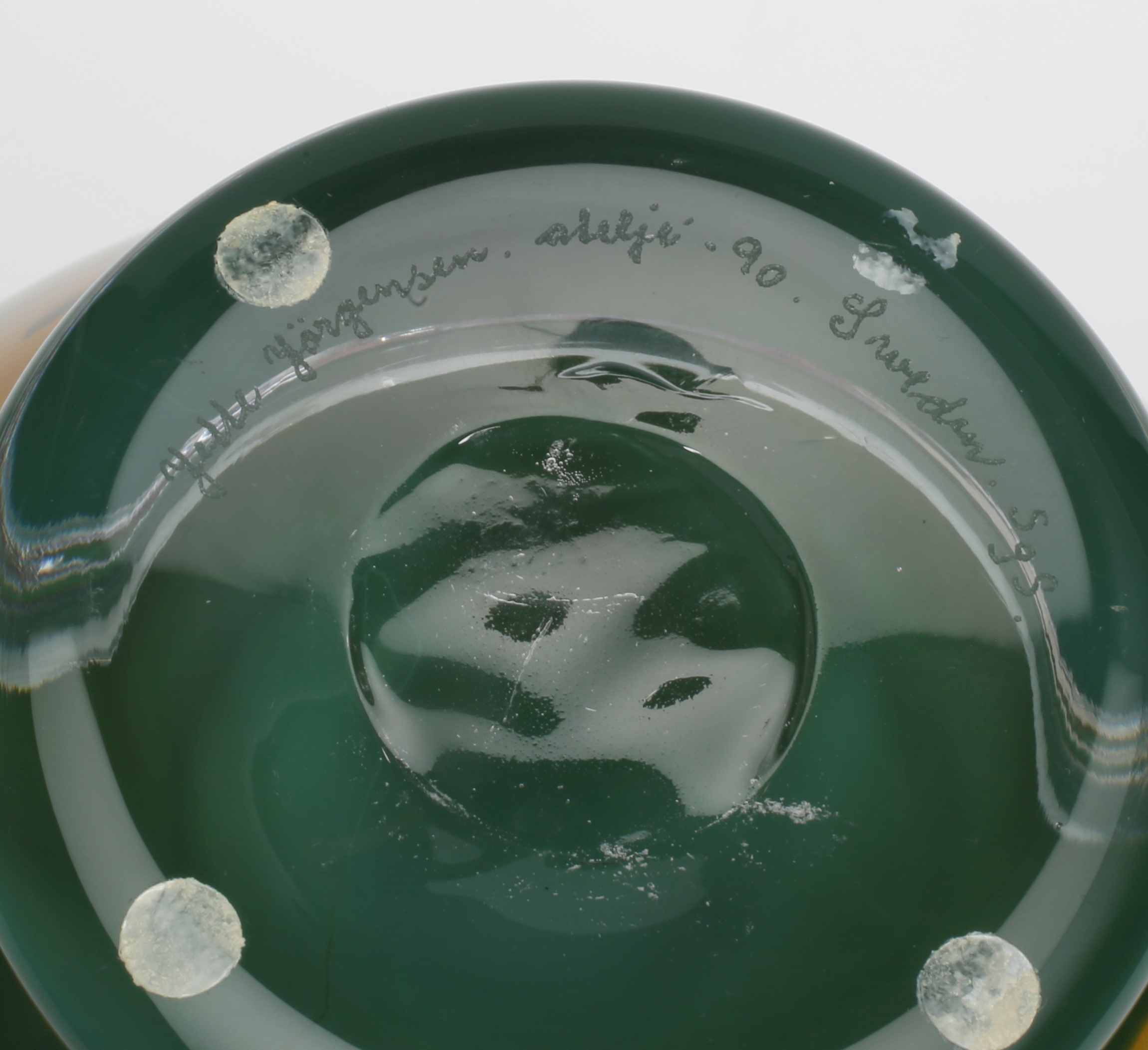 305206. JETTE JÖRGENSEN. Konstglas, fullsignerad, 1990.
