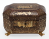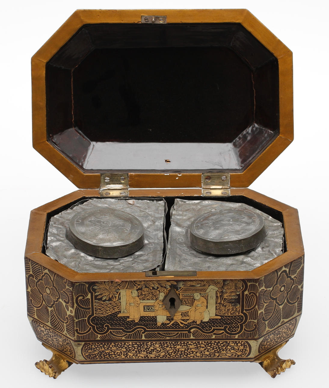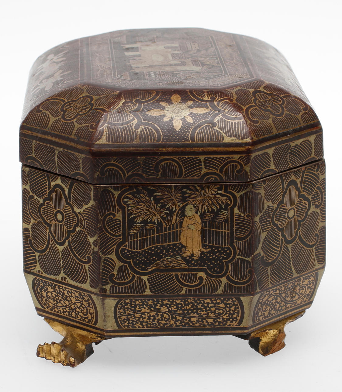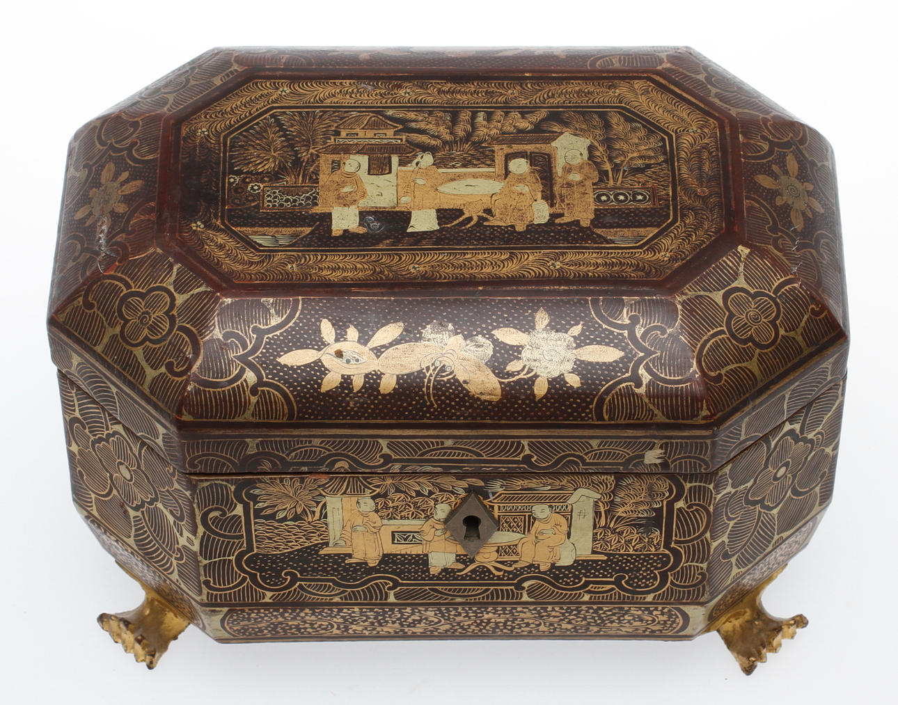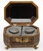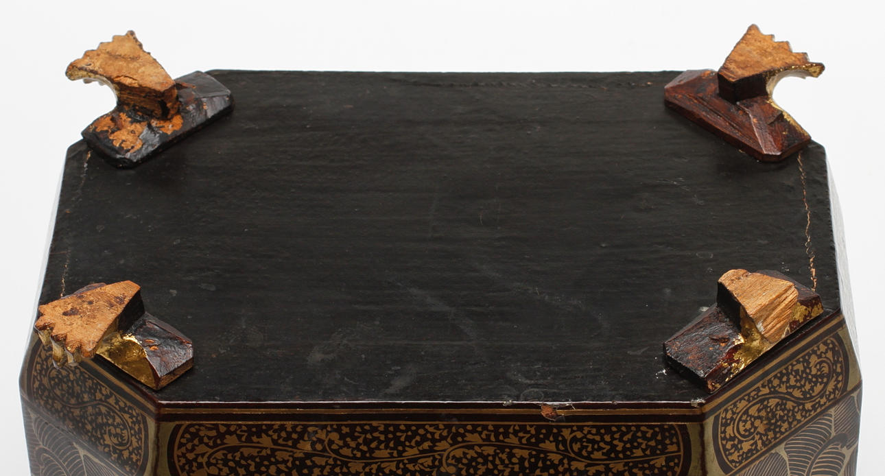 Med tenninsats, lackarbete. Längd 20 cm. Höjd 13 cm.