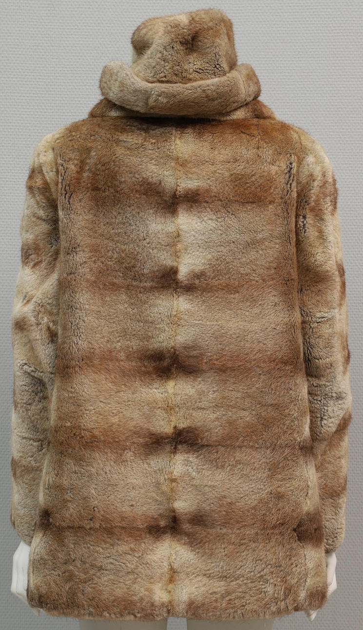 3053901. PÄLSKAPPA & MÖSSA, beige päls, troligen Prärievarg.