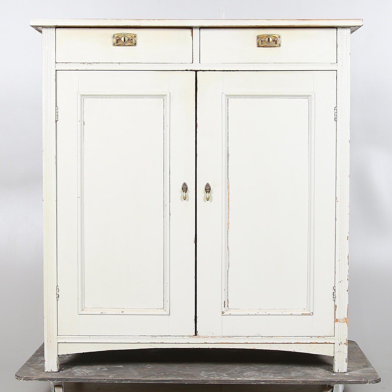 2 luckor med bakomliggande hyllor, 2 lådor ovanför. Senare bemålad. Bredd 107, djup 49, höjd 116 cm.