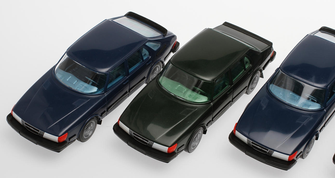 MODELLBILAR, plast, 6 st, Saab, nya i förpackning.