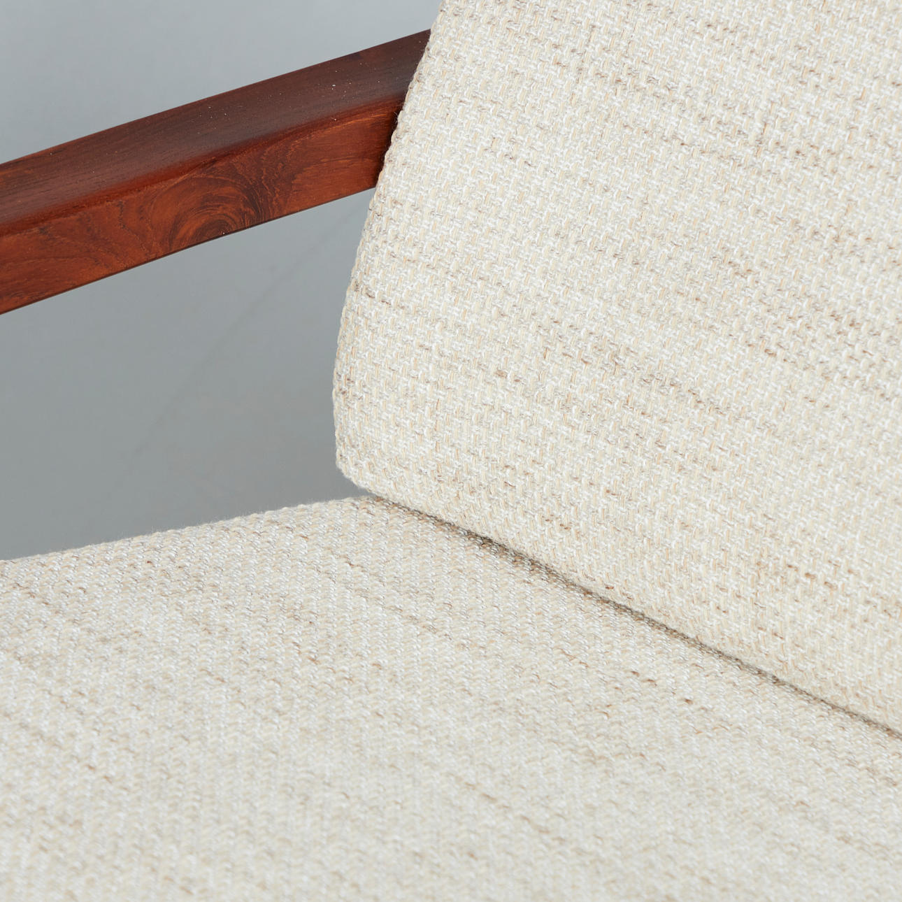 Børge Mogensen (1914-1972), soffa, teak, ull, 1960-tal, Danmark. Konstruktion med glaserad teakram med armstöd och löst placerad beige ullsits och ryggklädsel, med tillverkarens namn, H.76cm, sitthöjd: 41cm, L.177cm, W.70cm.