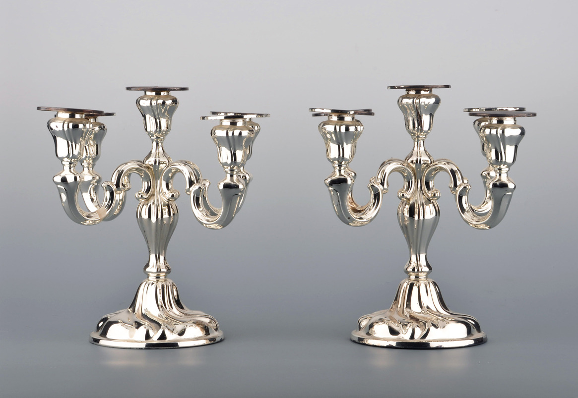 305689. PAAR CHIPPENDALE-LEUCHTER. Corpuses troligen försilvrade, zaponed.