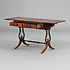 Mahogny. Längd 89 + 30x2, bredd 60, höjd 76 cm.
