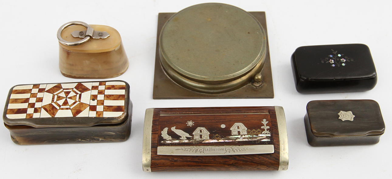 Dosor med inläggningar, kompass märkt P. Gottschalk, Sthlm. Längd ca 8 cm.
