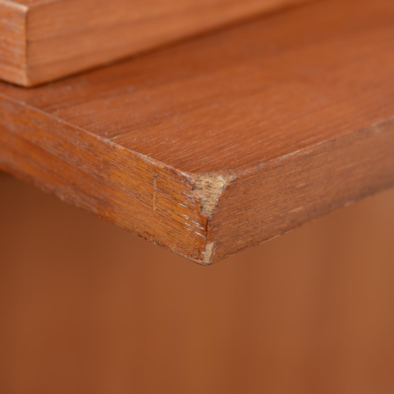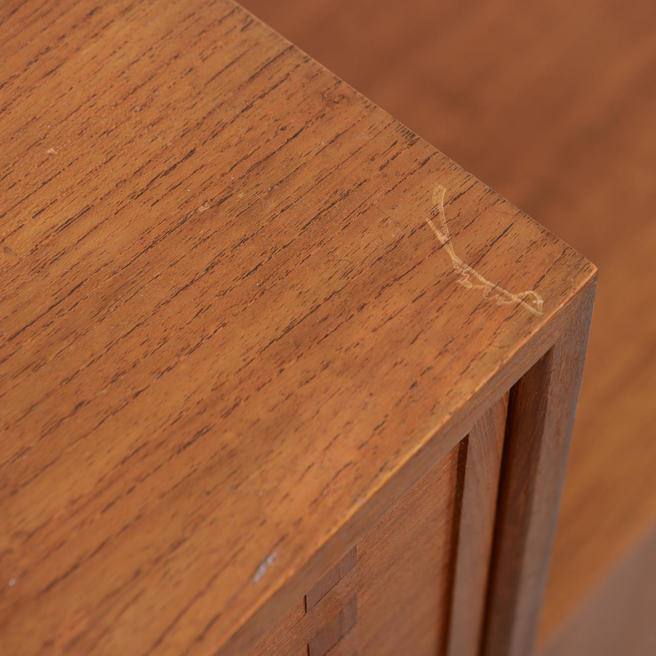 Ej fullständigt genomgången, delar kan saknas. Bruksslitage, faneerskador, slagmärken.