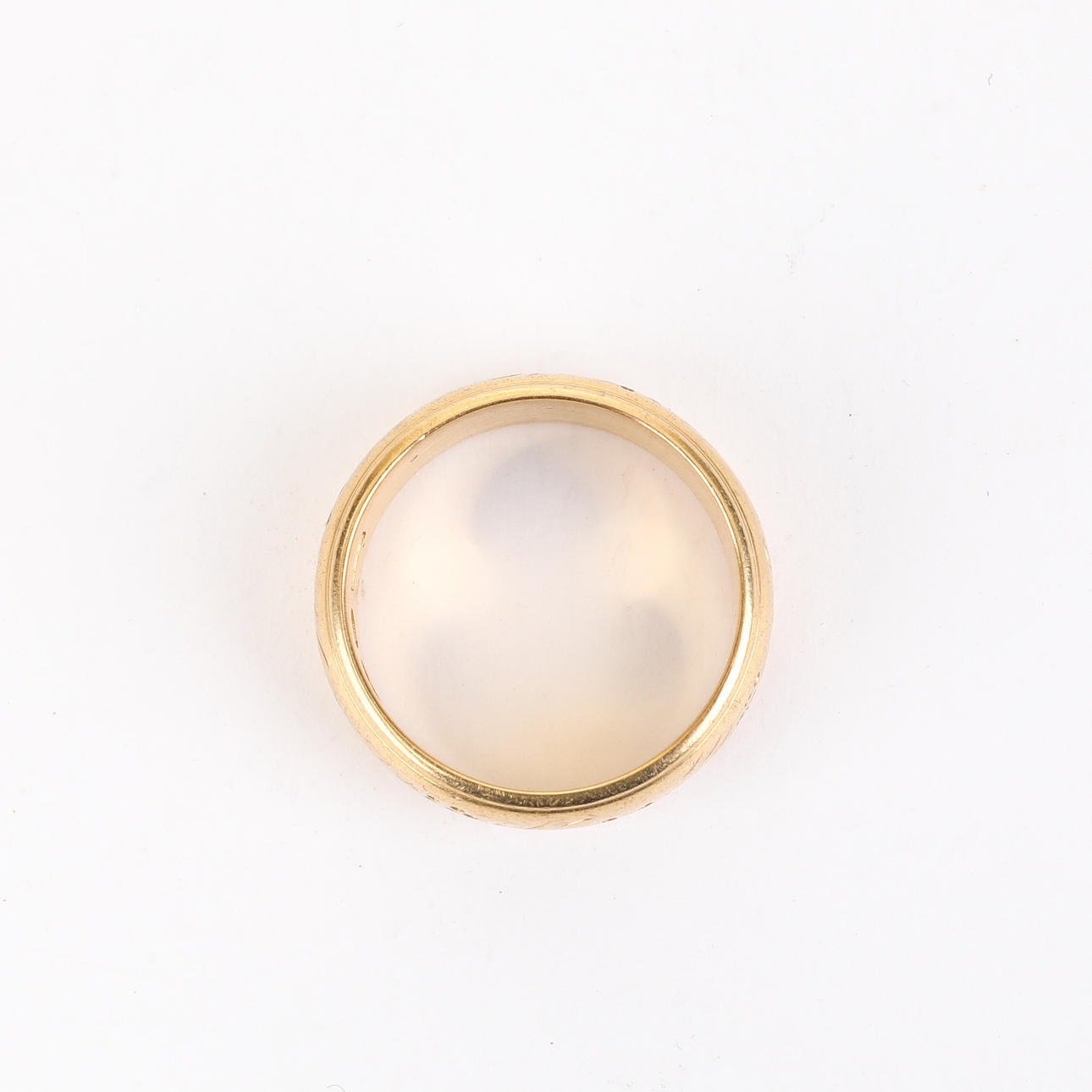 Guldring i 18k, storlek ca 18, bredd ca 7 mm. Vikt: ca 9,39 gram. Ringen är tillverkad i Katrineholm, 1979 av guldsmed Gösta Boström.