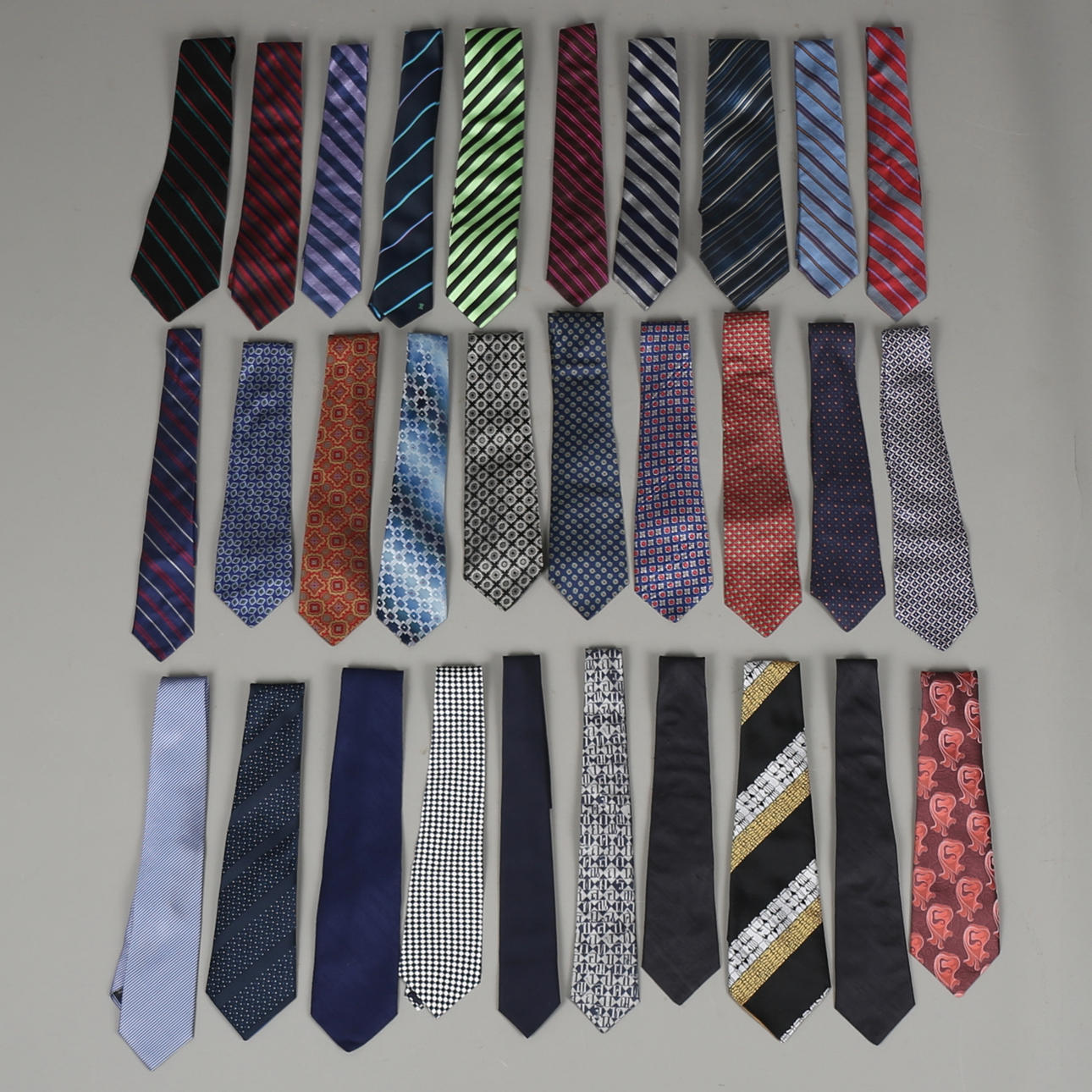 Slipsar i olika modell, märken, material och med olika mönster/färg.