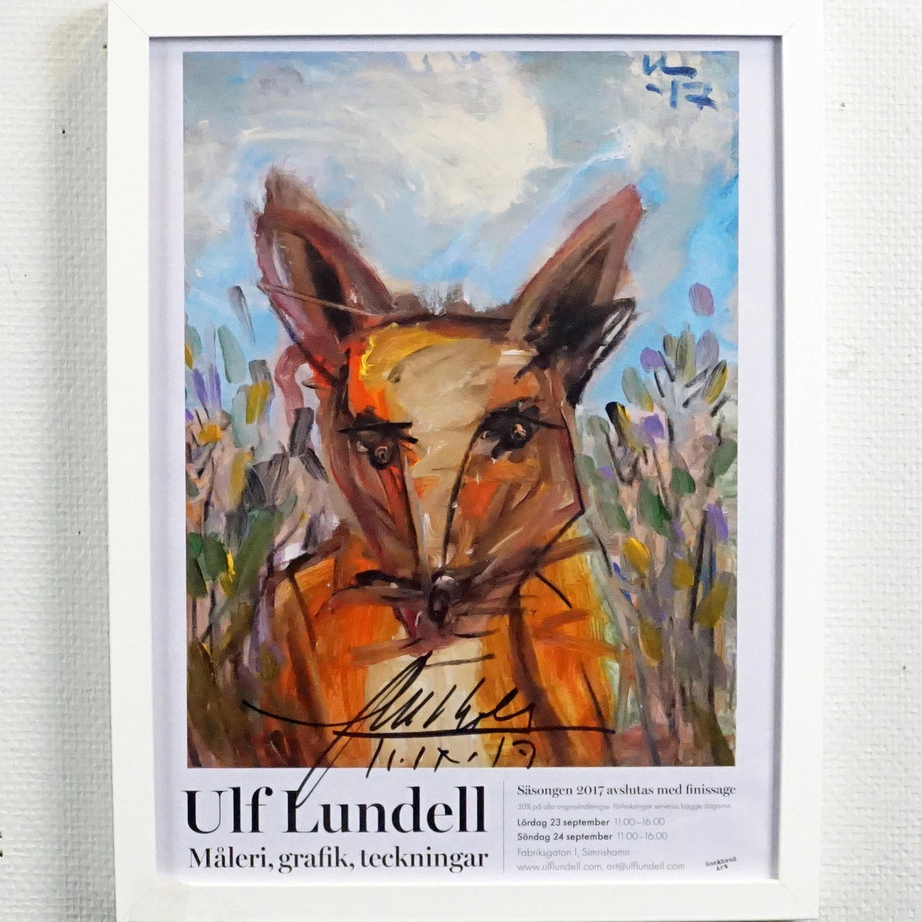Affisch från Ulf Lundells utställning 2017, signerad och daterad.