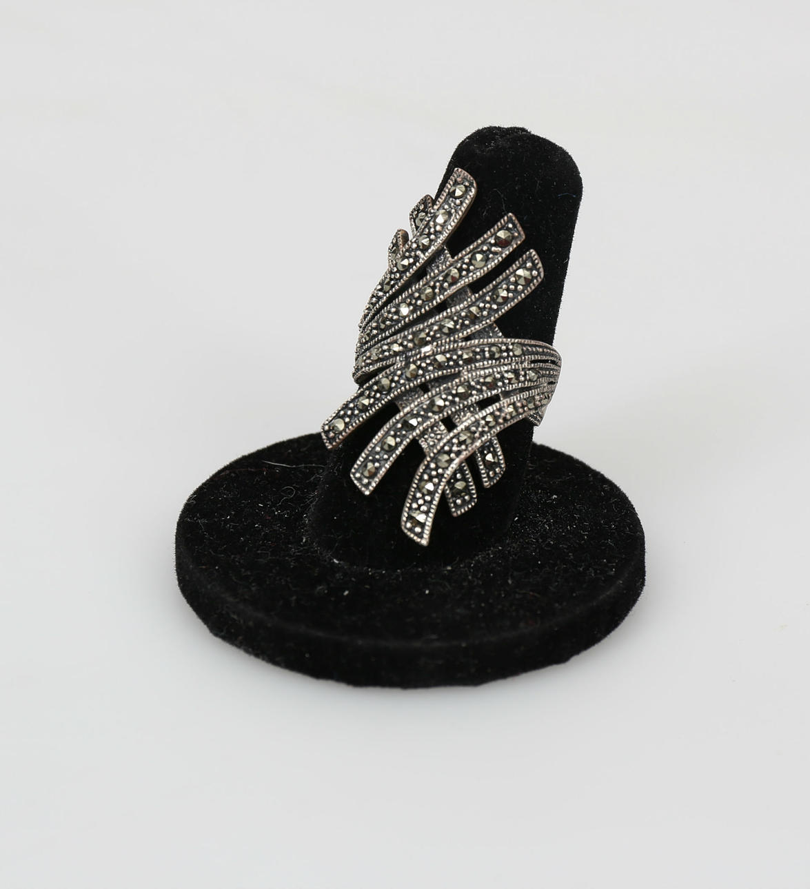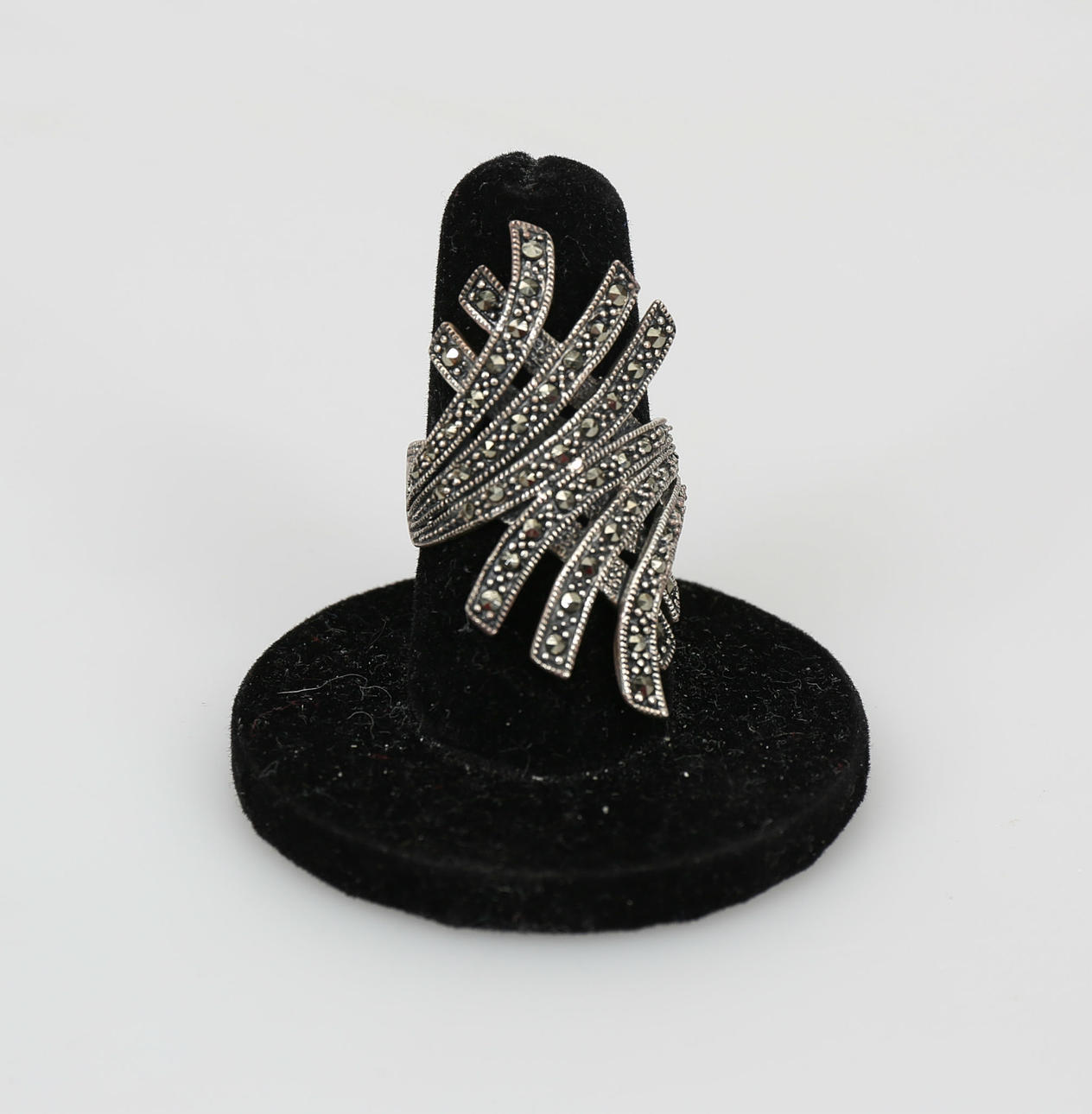 RING, silver, markasiter, Art Deco stil, 1900-2000-tal.