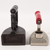 2 strykjärnslod. Ett av dom är märkt "L5", det andra ser ut att vara märkt "V" samt "A-M".
