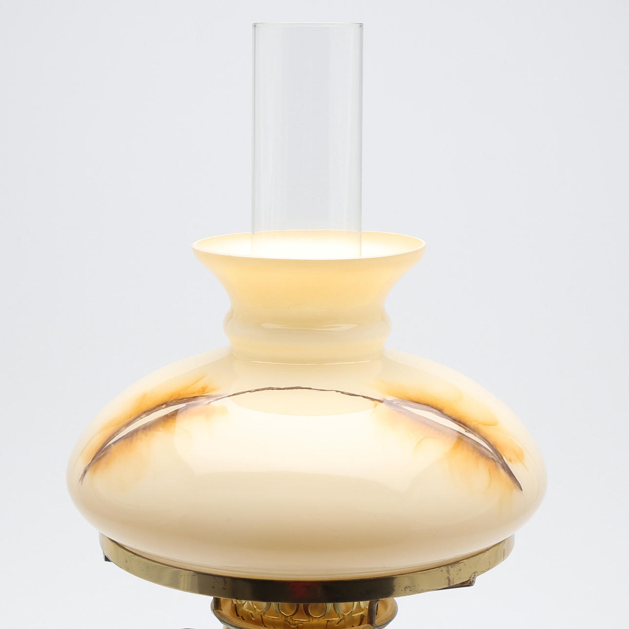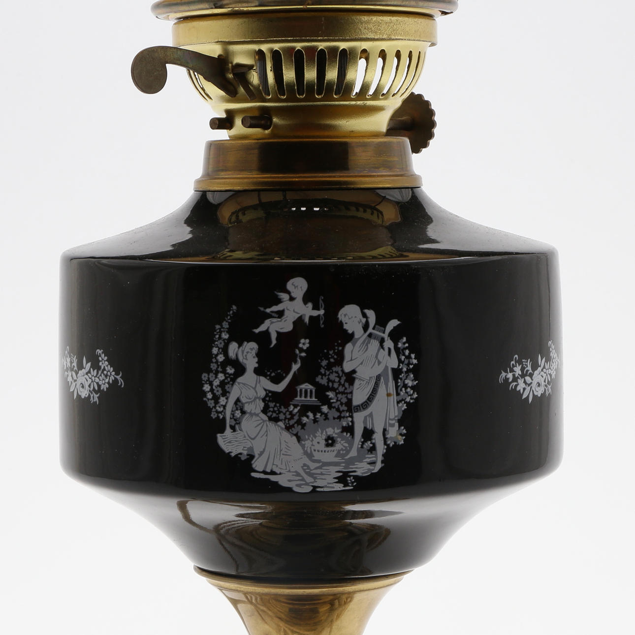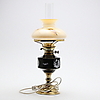 Elektrifierad. Dekor av romantisk scen i trädgård. Totalhöjd (inklusive brännarrör) 55,5 cm.