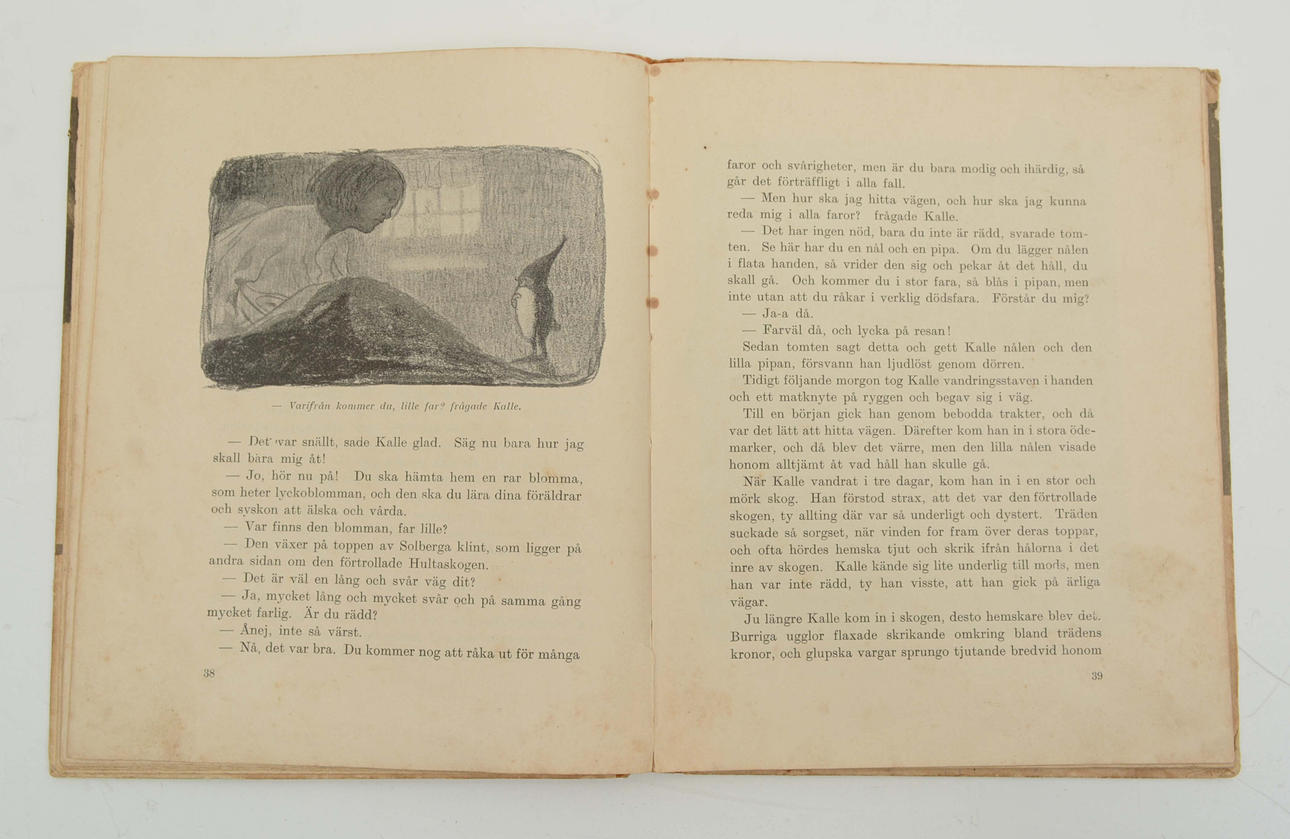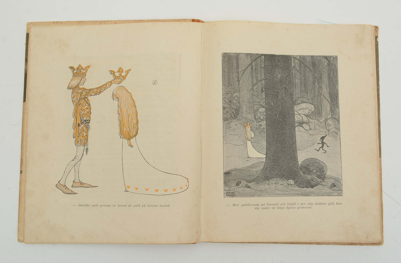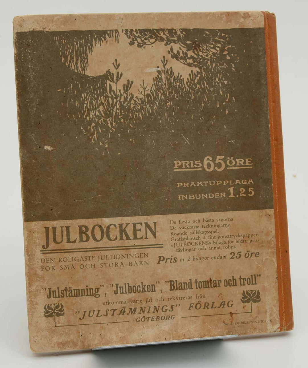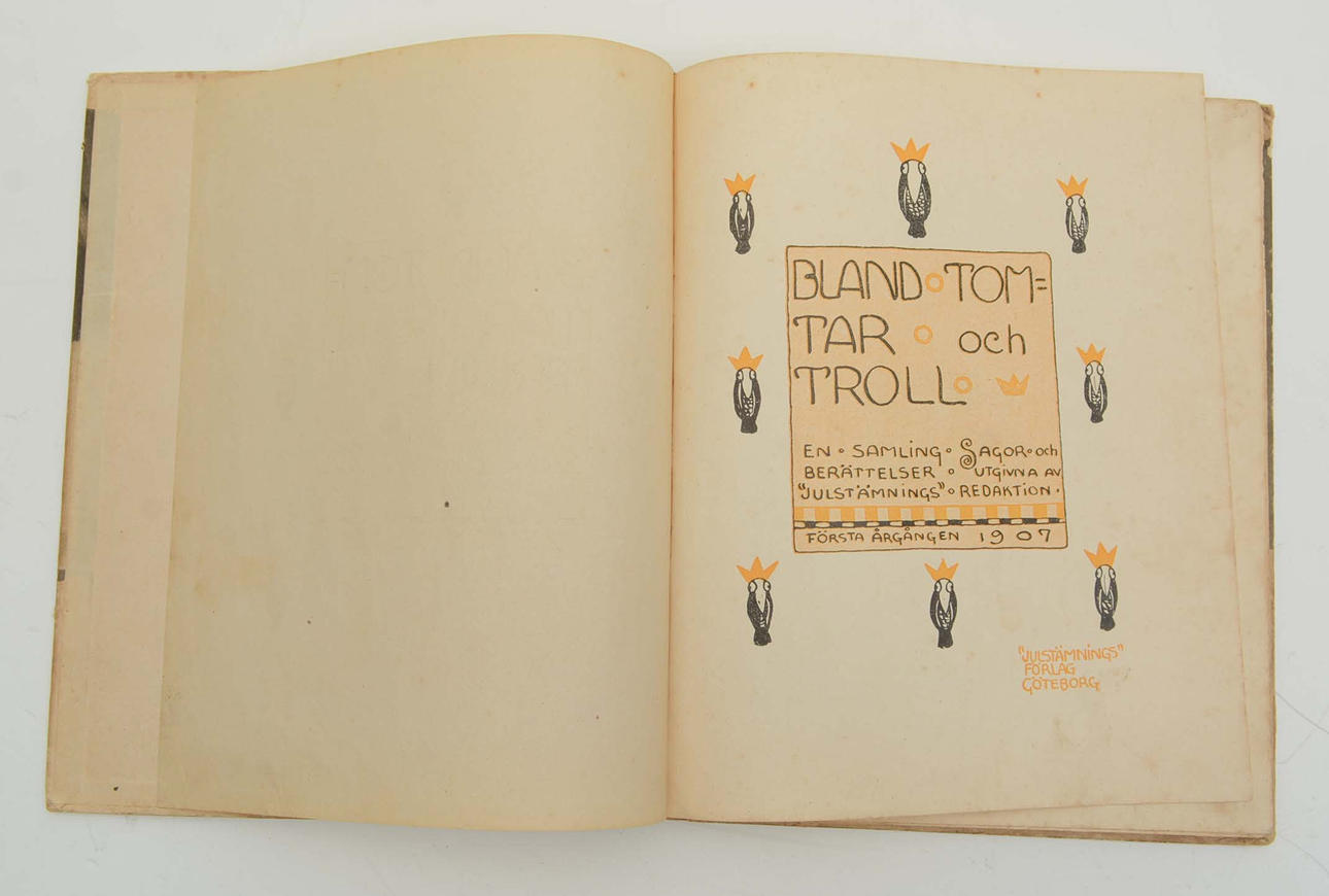 En samling sagor med teckningar av John Bauer. Julstämnings Redaktion. Stockholm: Åhlén & Åkerlund, 1907. 99 s. Första årgången. Inbunden med pärmbild i färg. Illustrerad i svartvitt, samt med planscher i färg.