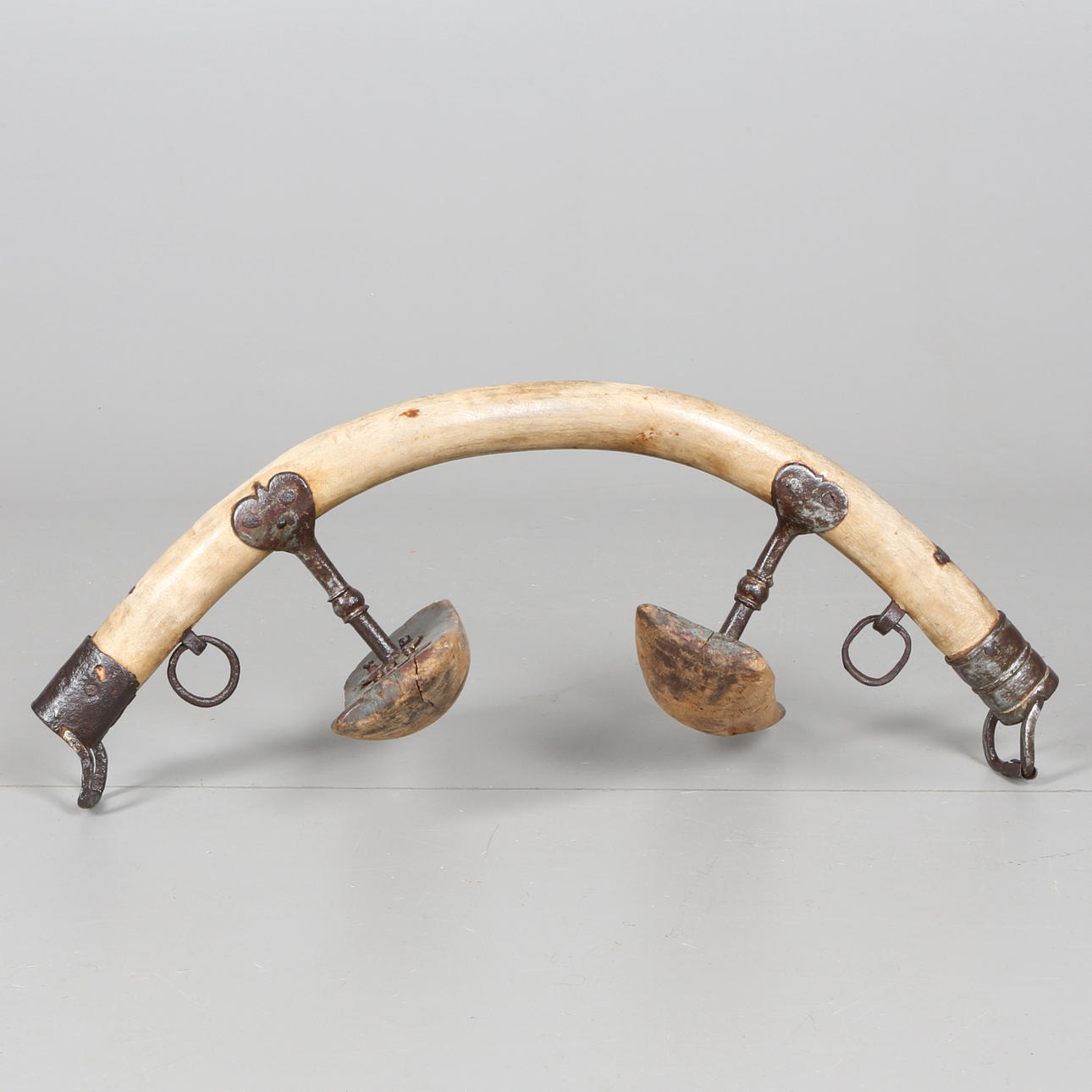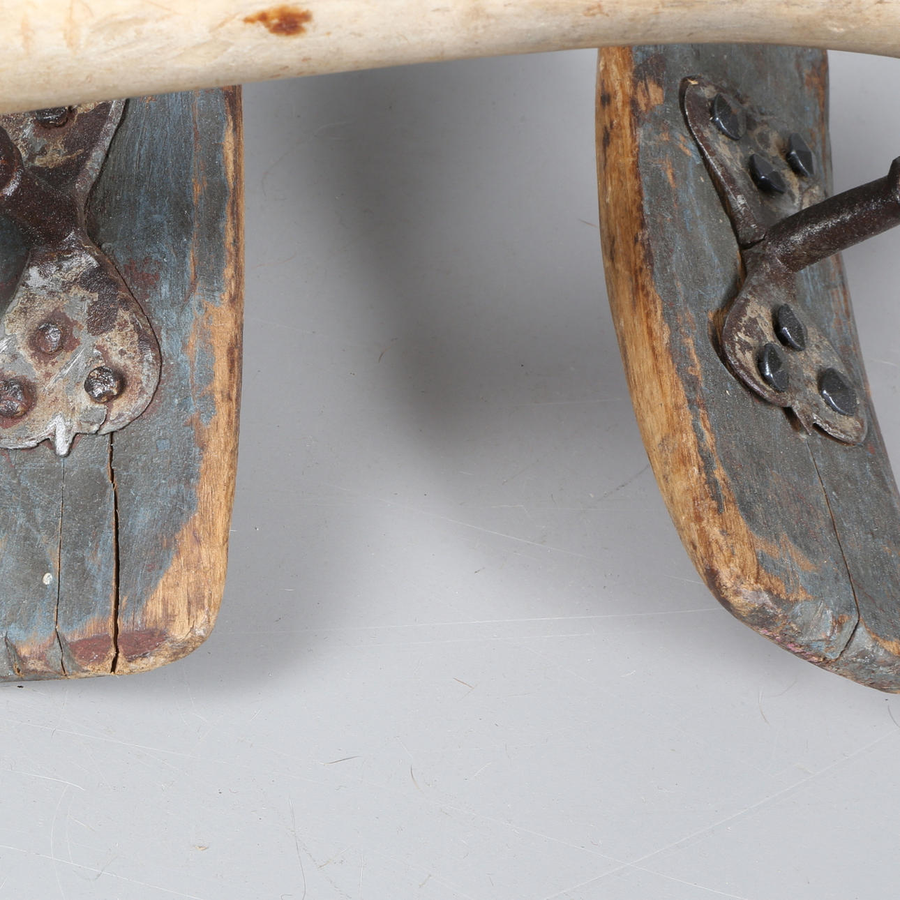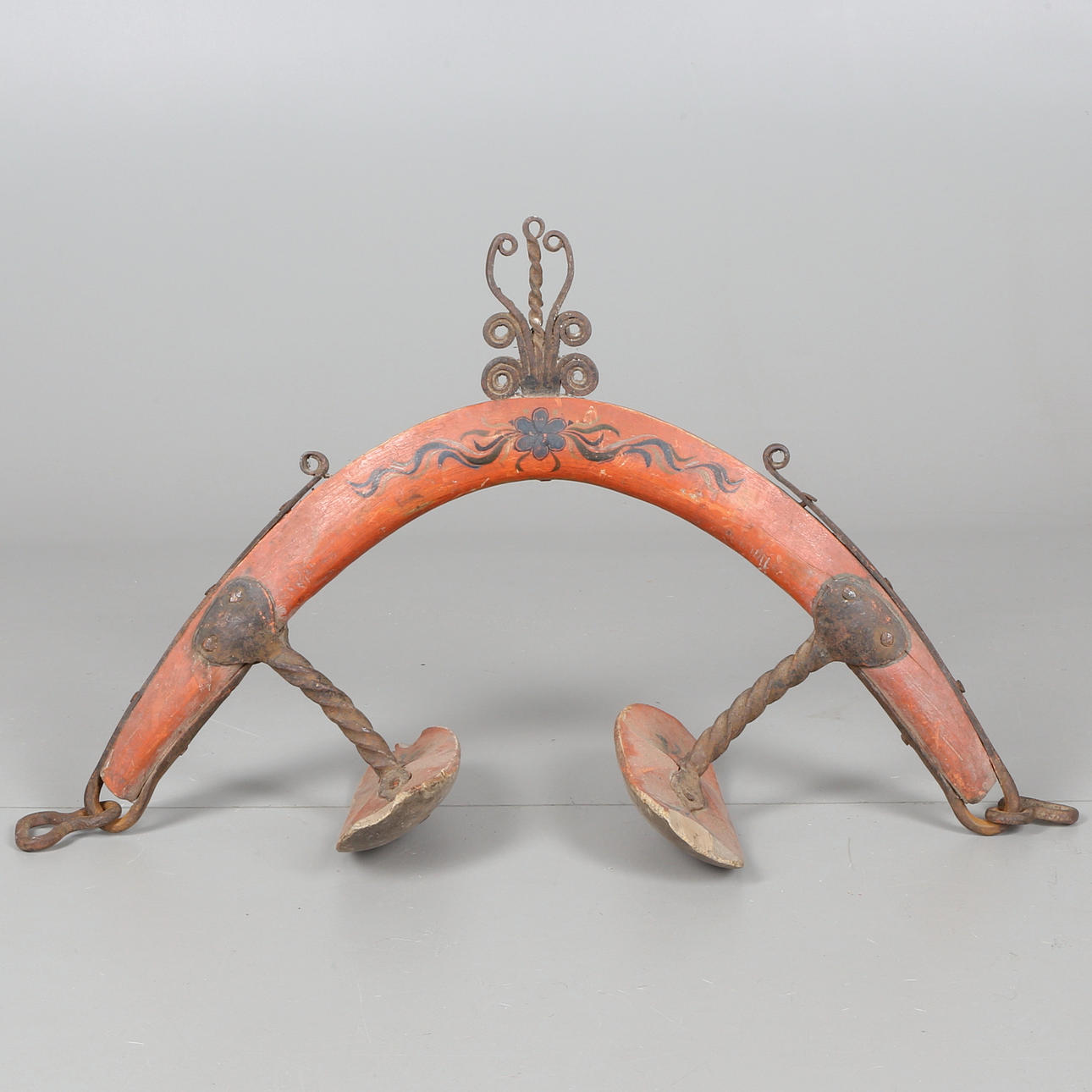 Diverse allmogeredskap, bland annat 1 st ok samt 2 st selbågar. Längsta längd (ok) 111 cm.