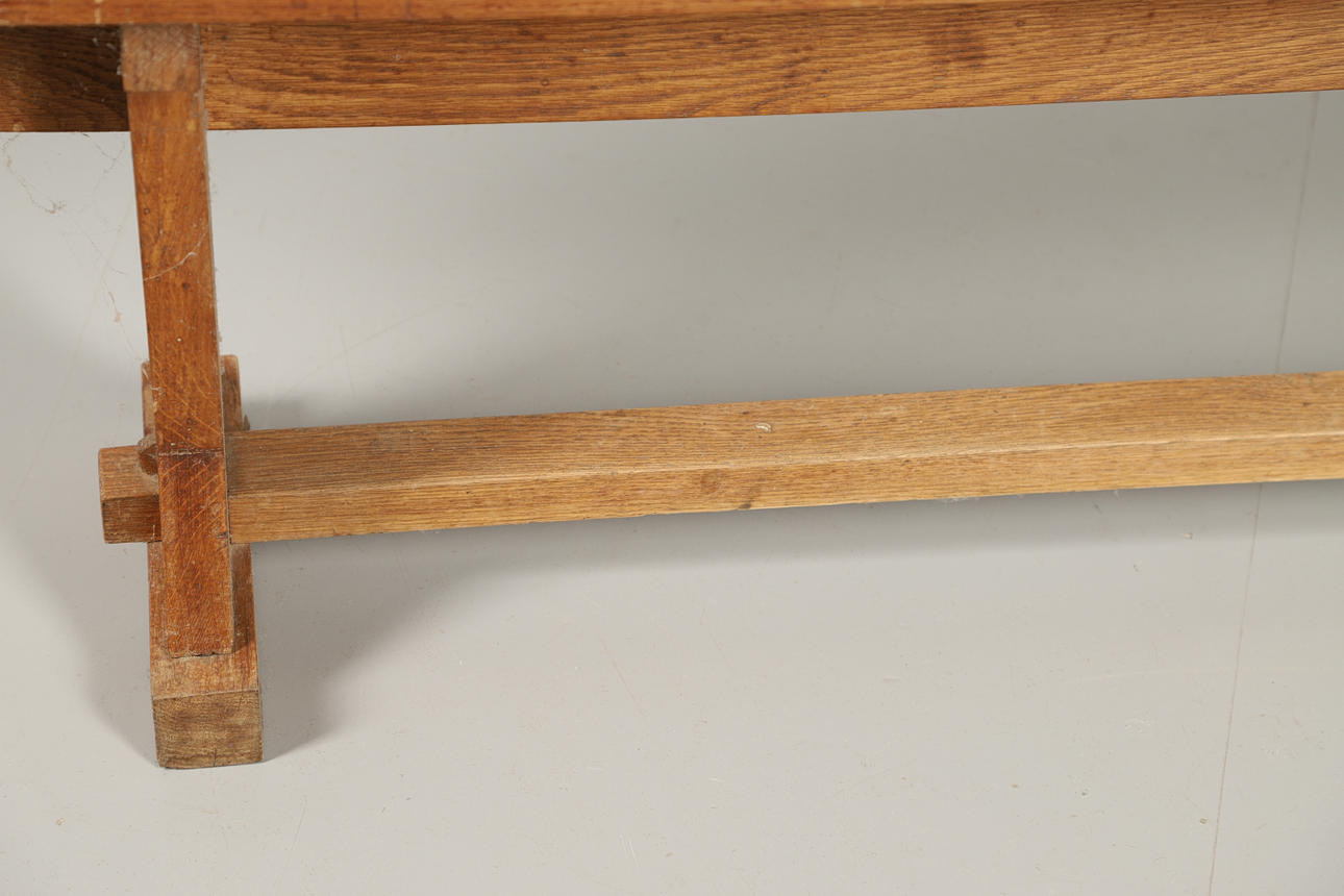 Av förenklad design, eventuellt från en skola eller kyrka. Höjd 45 cm x Längd 186 cm x Djup 24,5 cm.