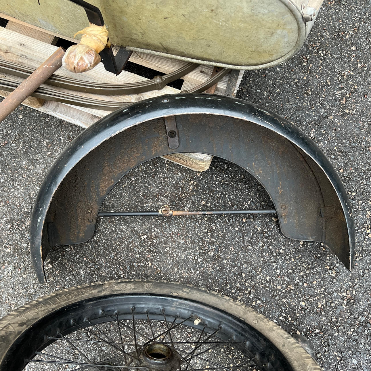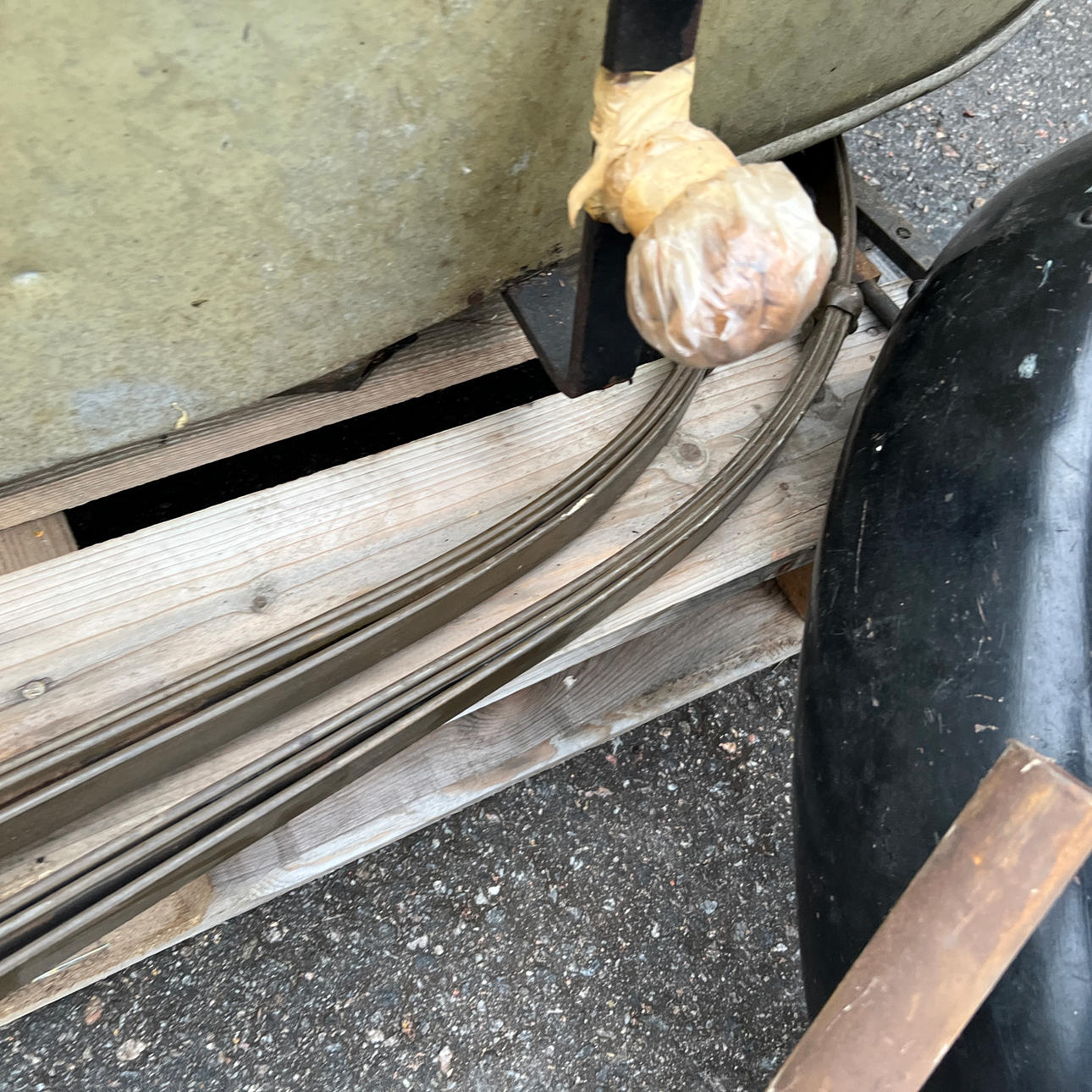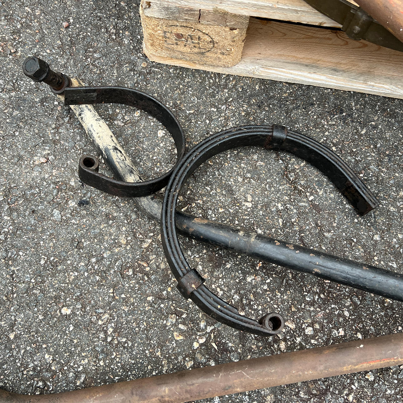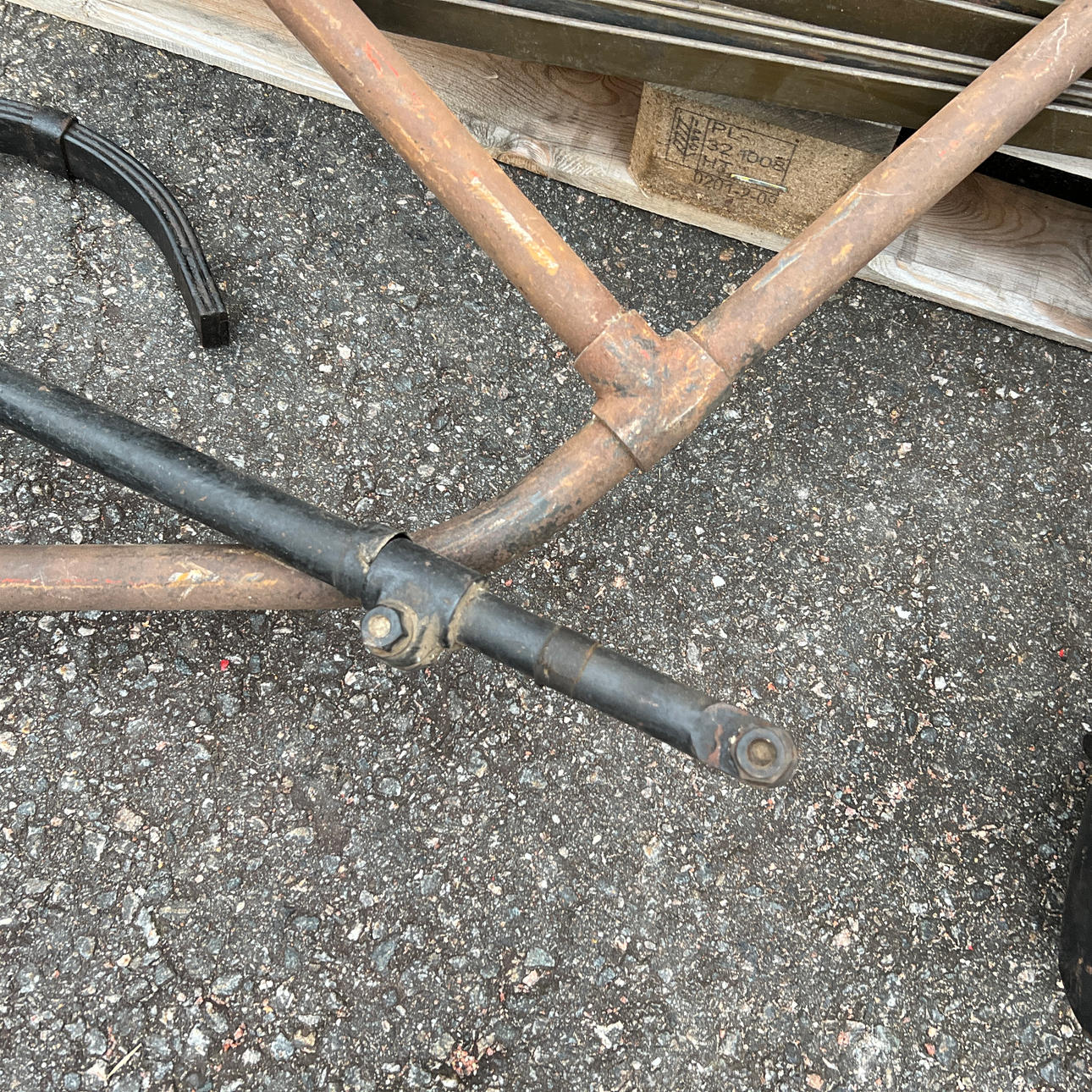 Diverse chassie detaljer som fjädrar och rörram.