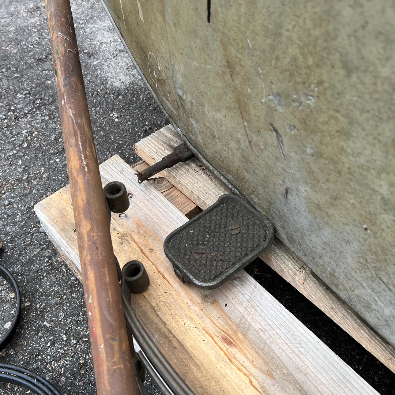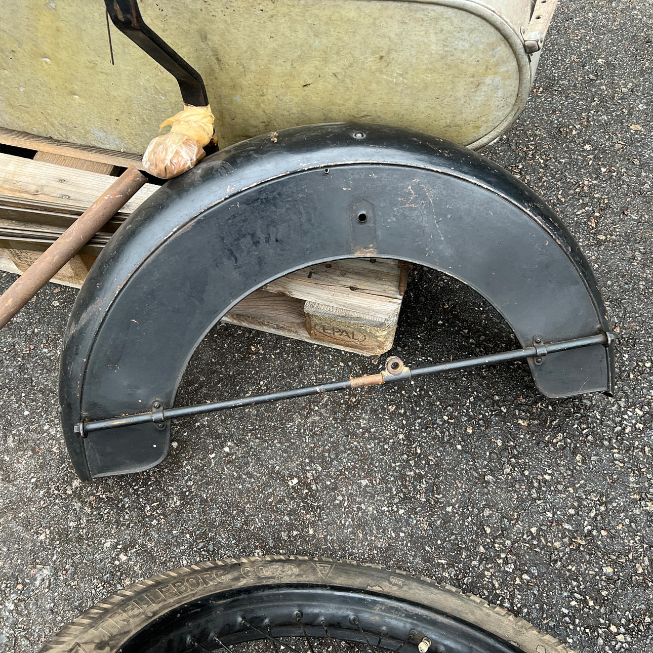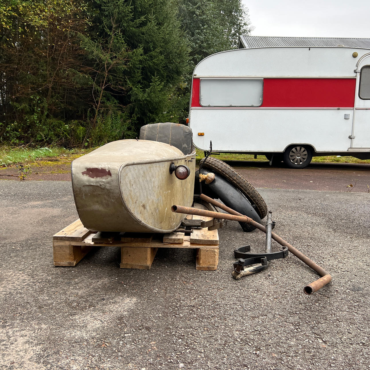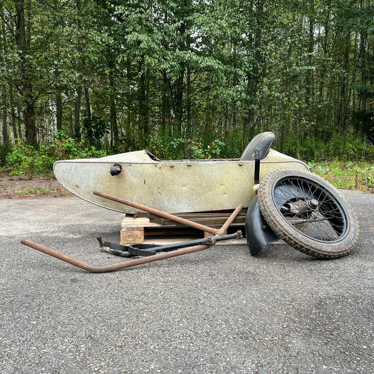 Diverse chassie detaljer som fjädrar och rörram.