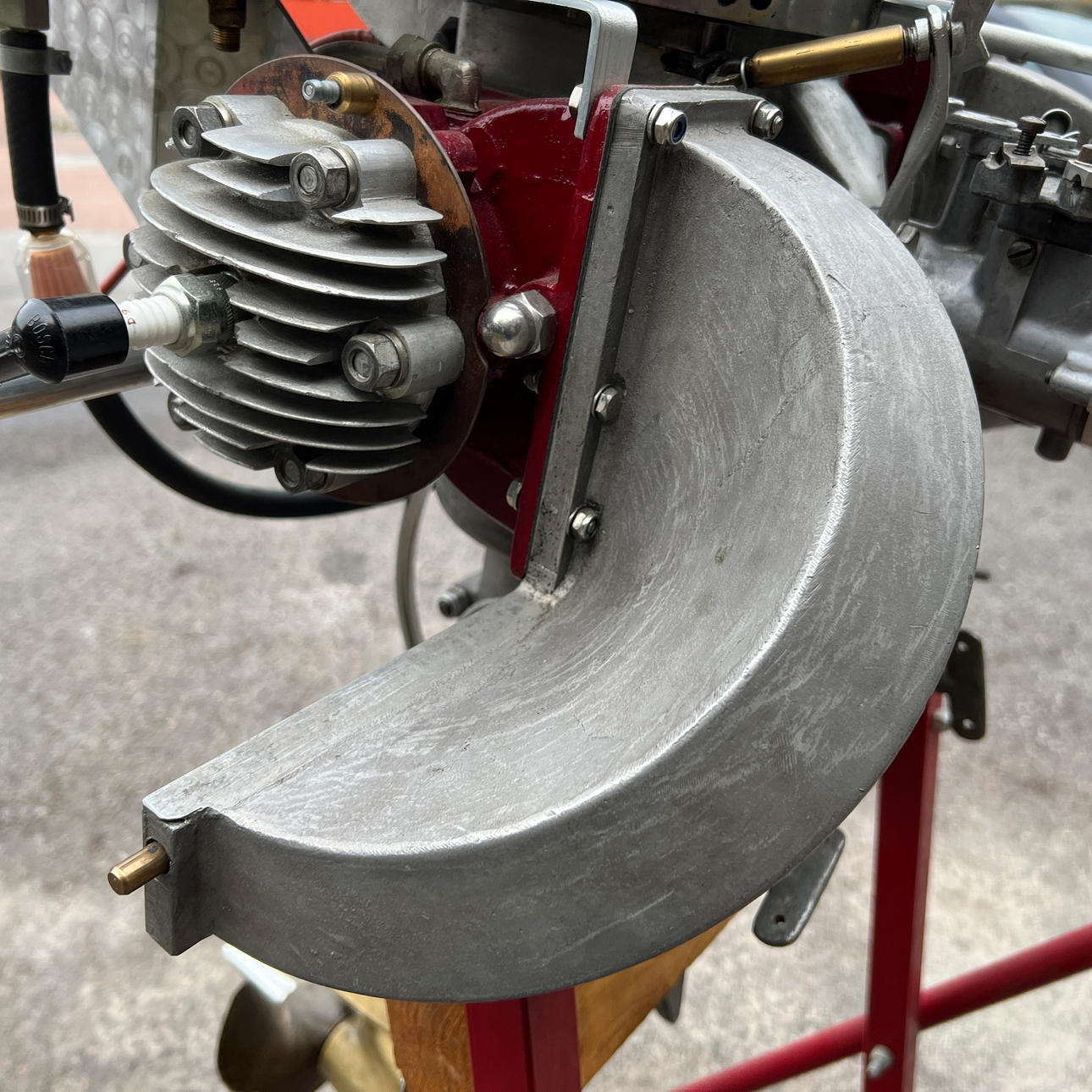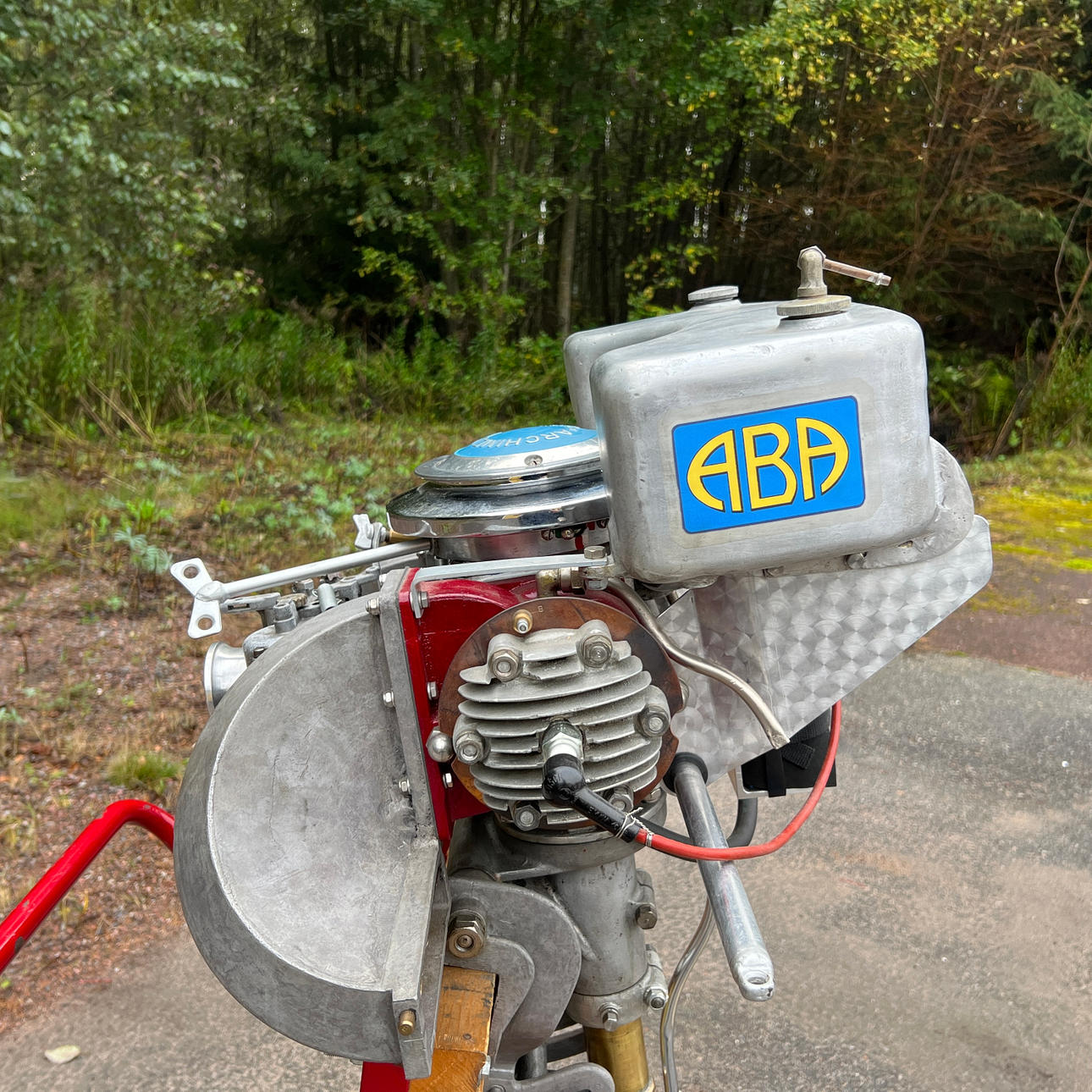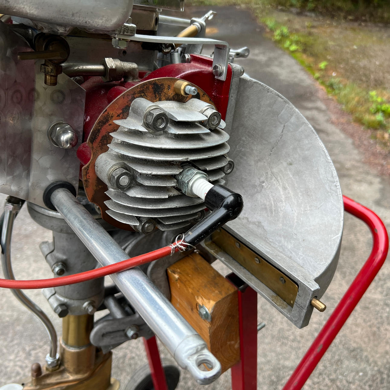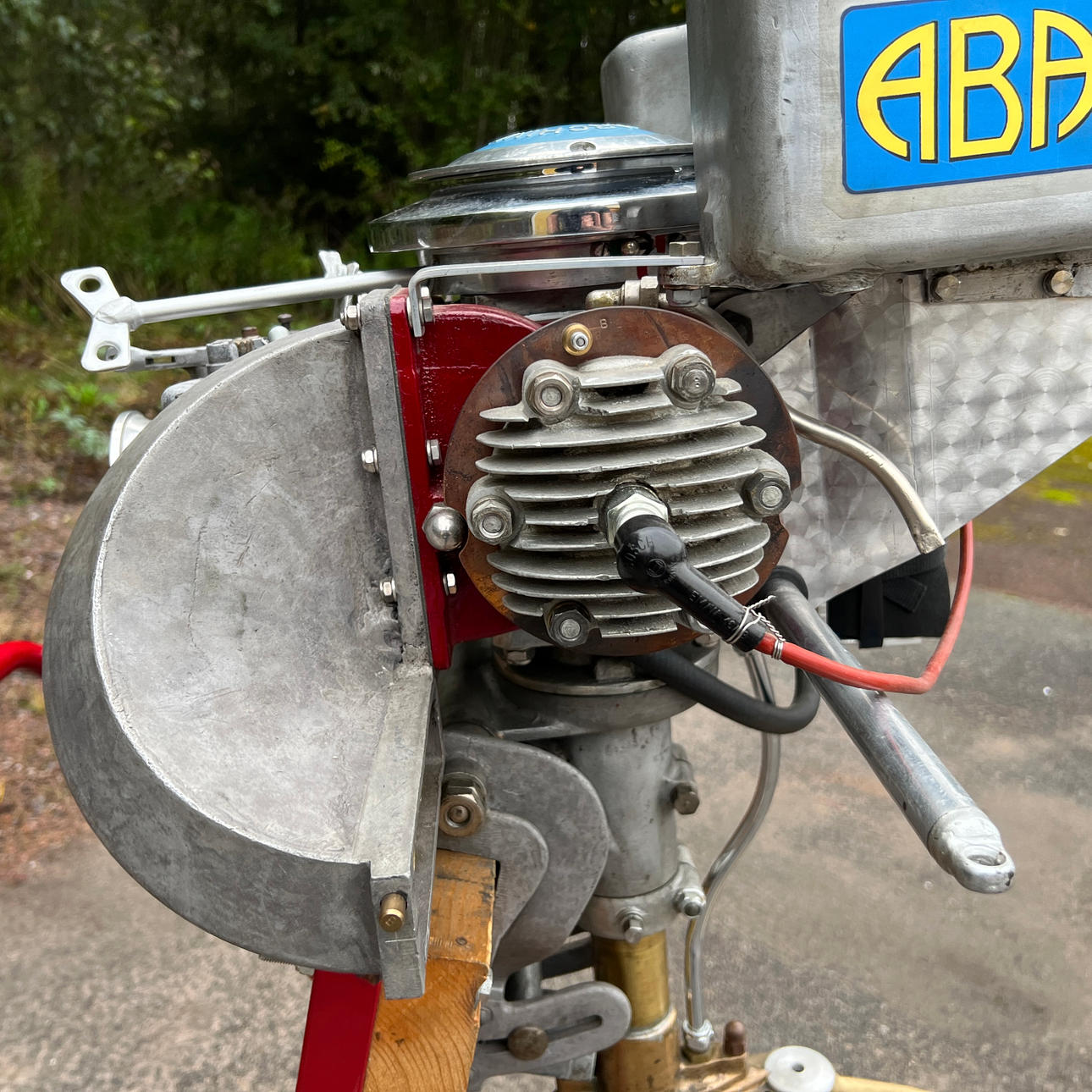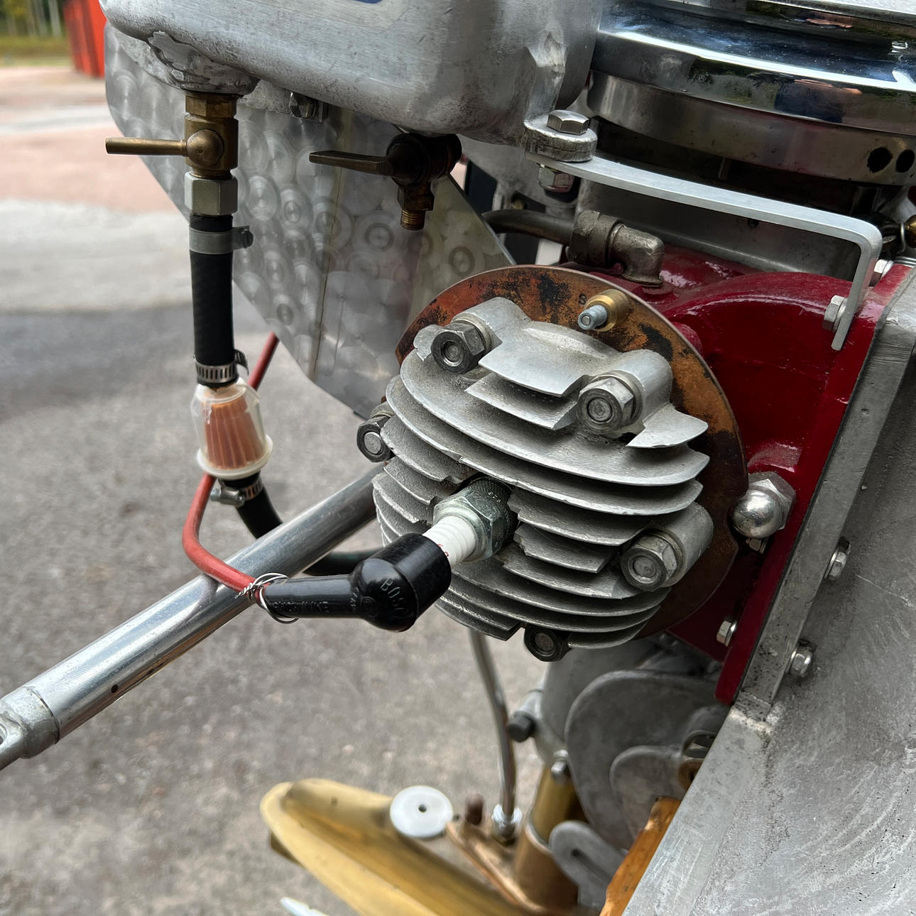 Kolvar och vevstakar samt modifierat vevhus från modell B-3 Racer, Luftkylda topplock. Spjäll i avgashornen för att hitta lämplig mottryck. Motorn var en prototyp i ett exemplar som aldrig kom att användas i tävling