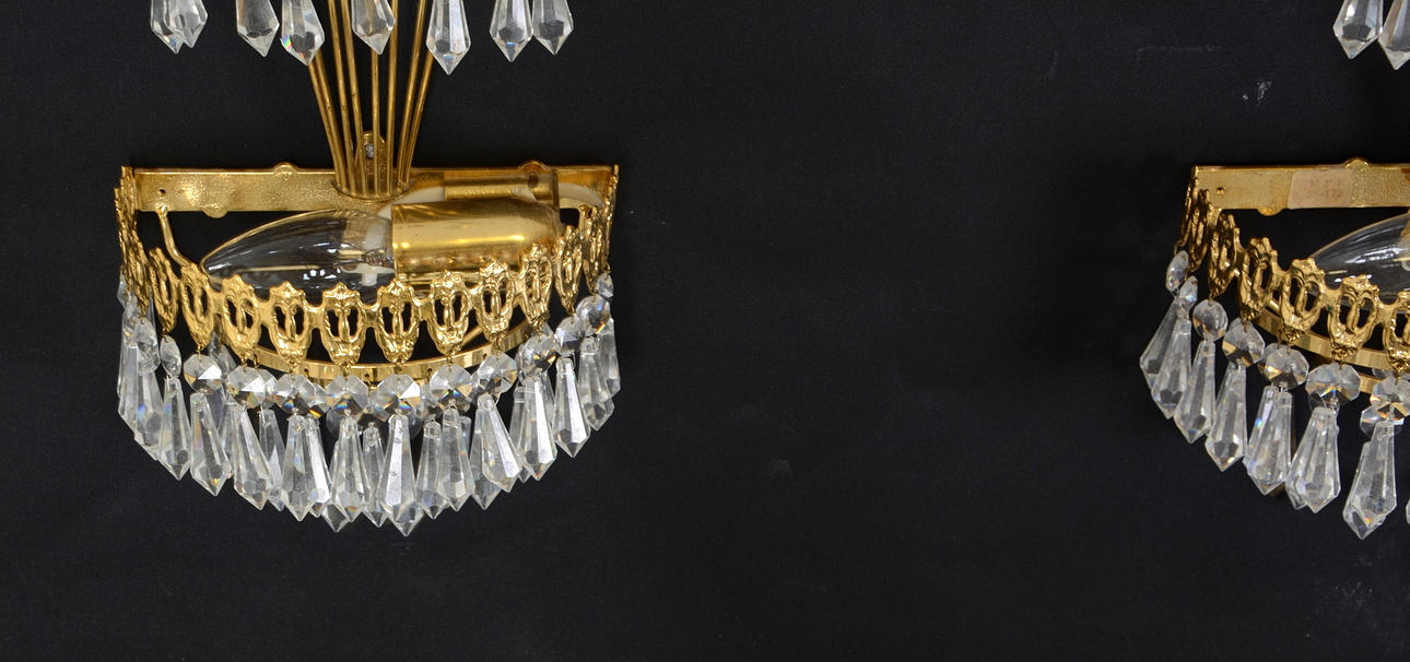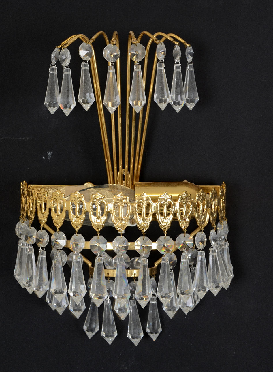 306901. VÄGGBELYSNING, förgylld metall och prismor.
