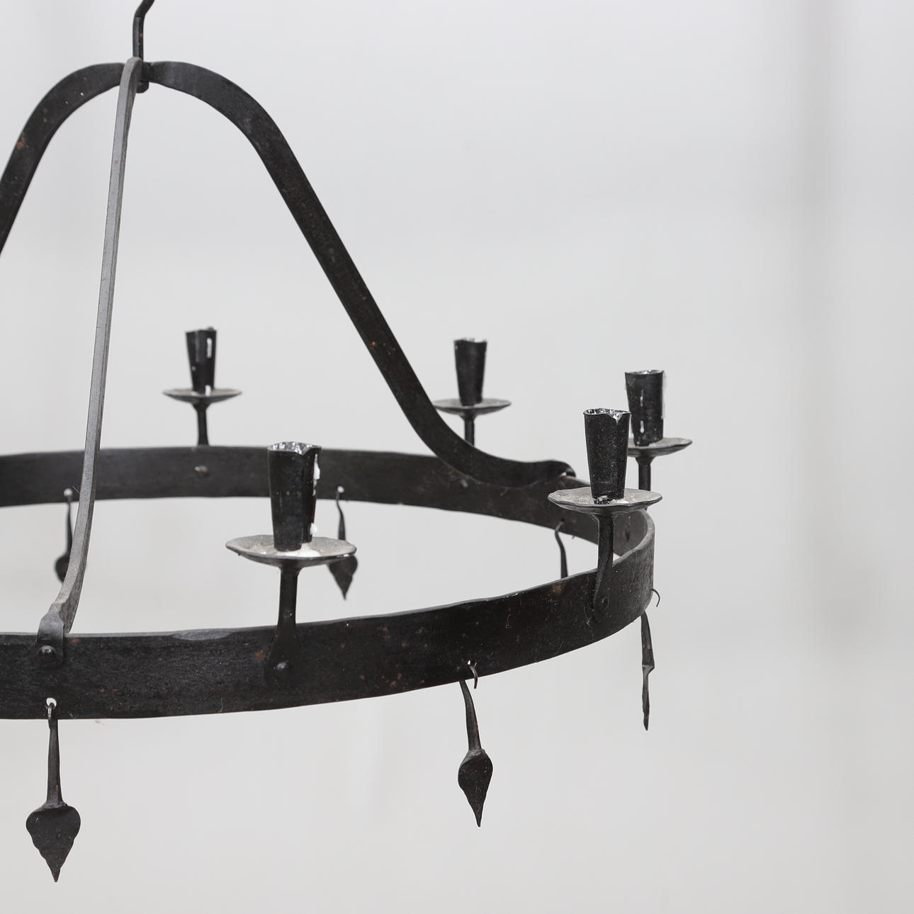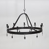 Nio ljushållare. Lösa dekorationer. Tre medföljande krokar varav två stycken längd 34 samt en längd 20 cm. Kronans diameter ca 67, höjd 38 cm.