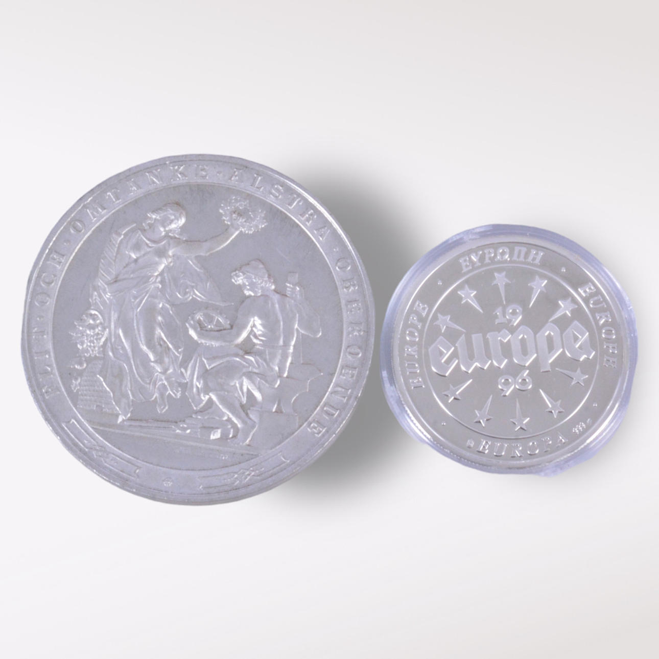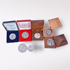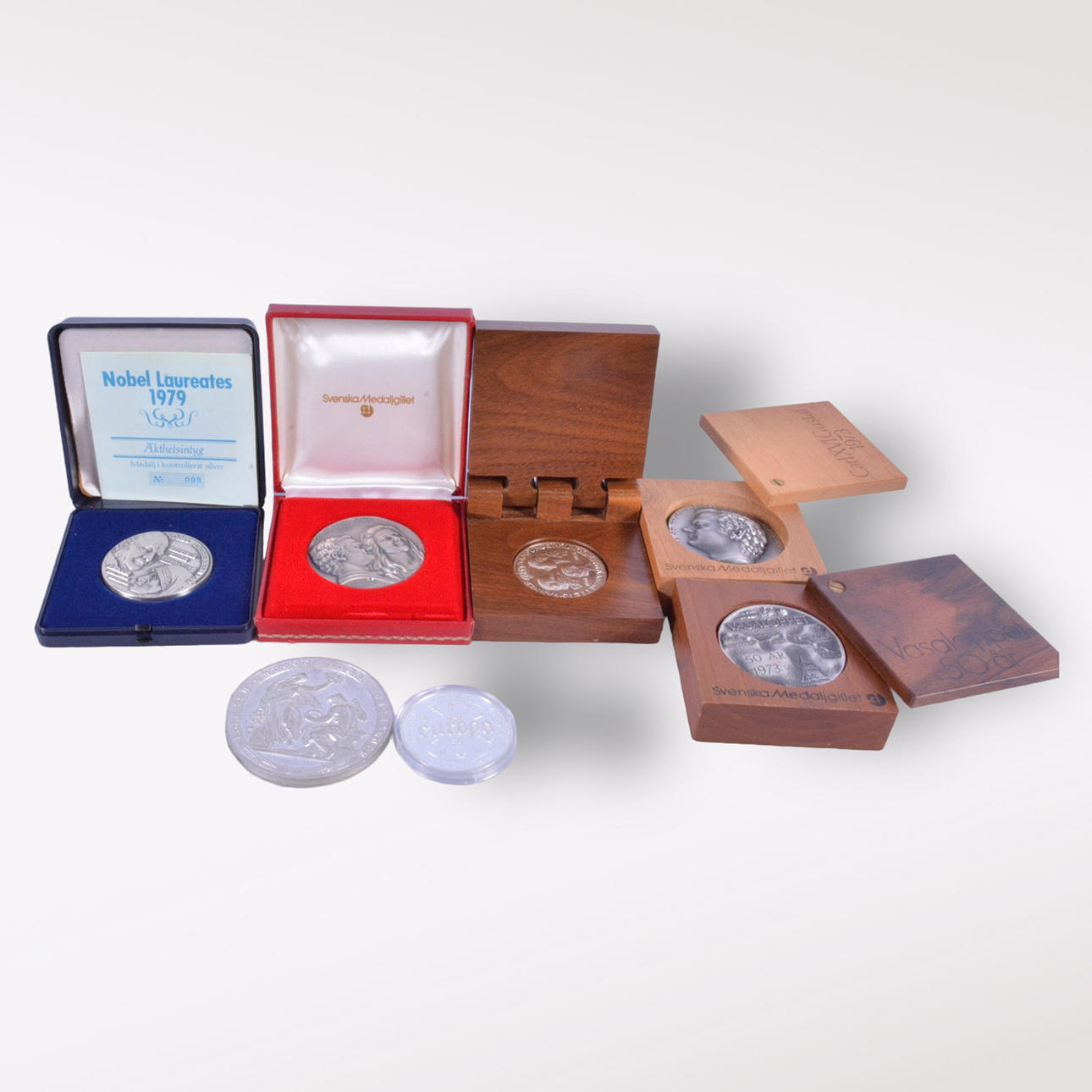 3069523. PARTI MEDALJER, en låda, bl a silver.
