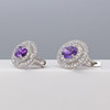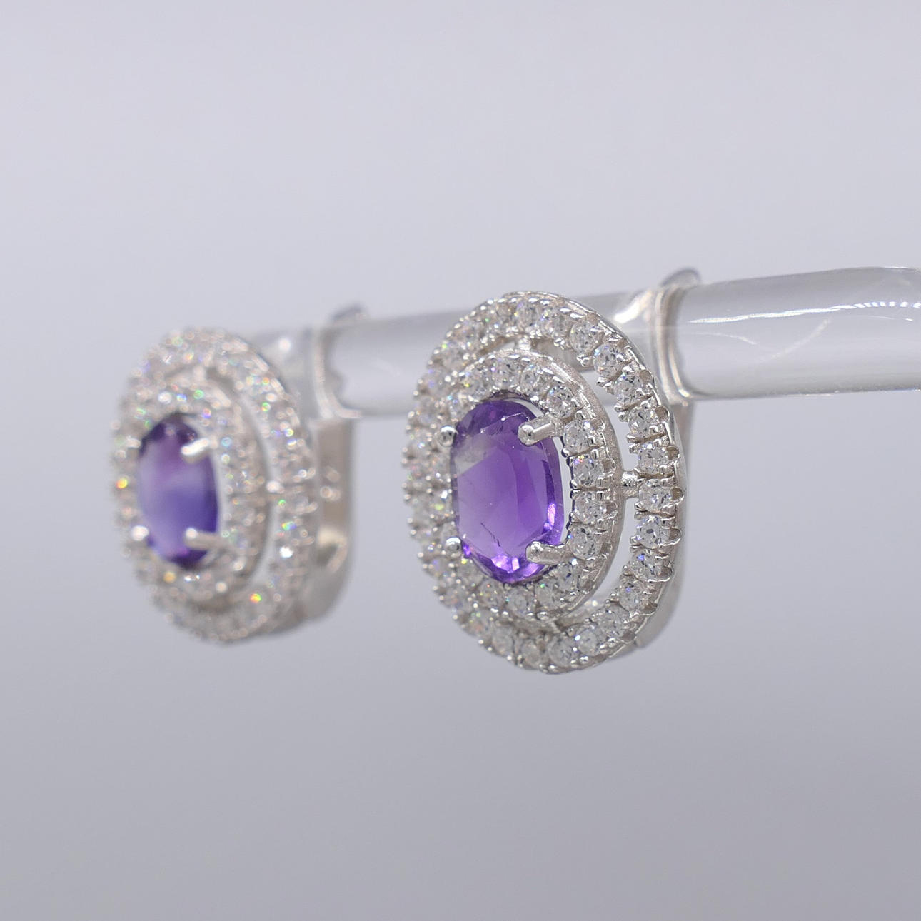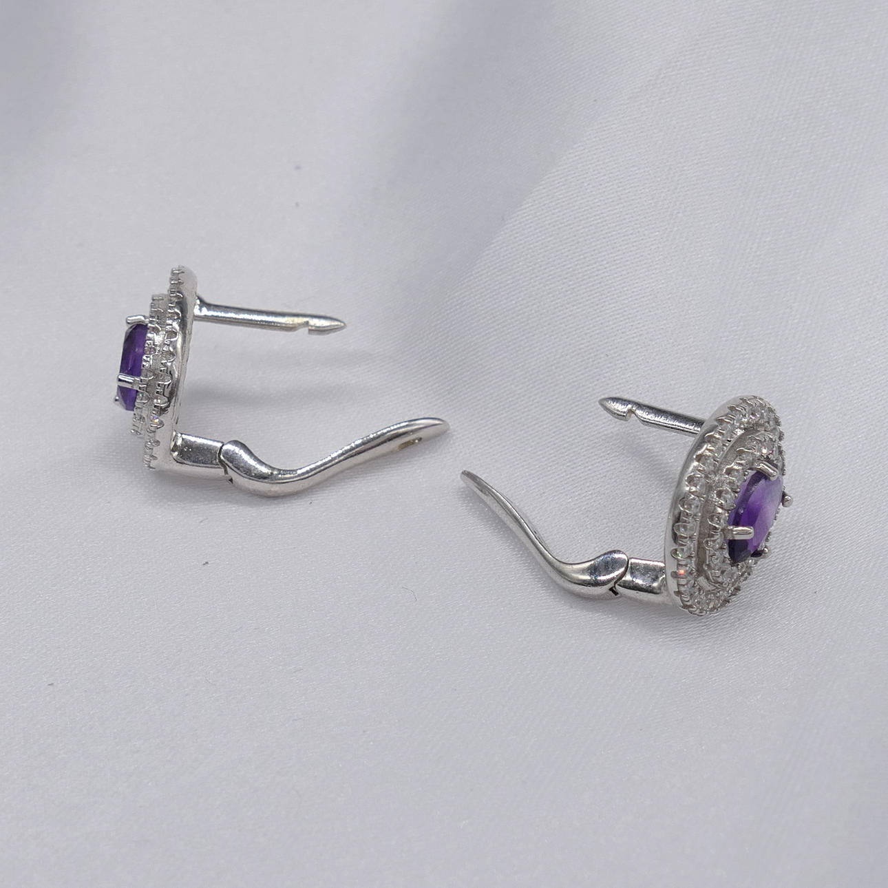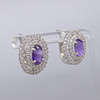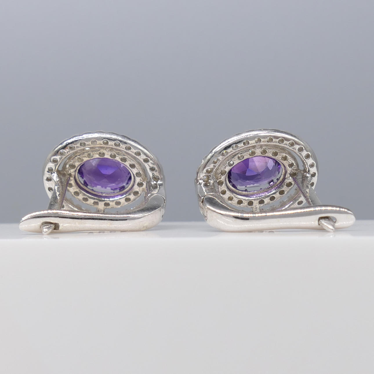 Ett bländande par ovala ametist ädelstenar och dubbla halo cubic zirconia örhängen med franska spakbeslag, i sterlingsilver.