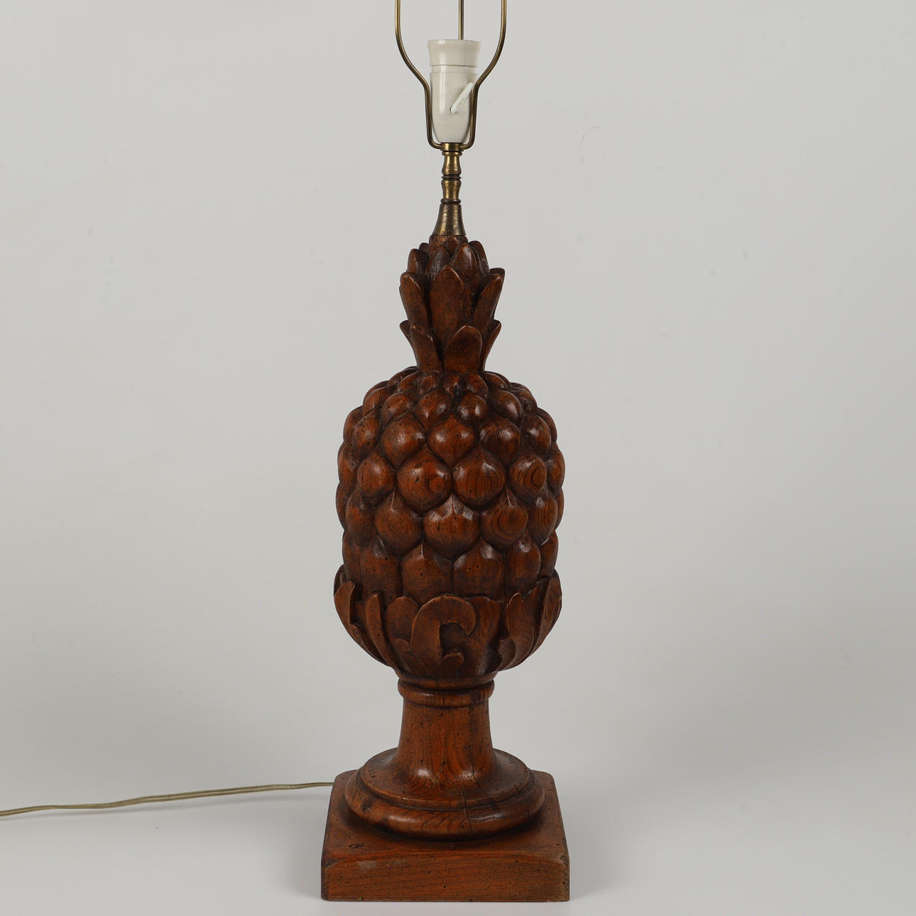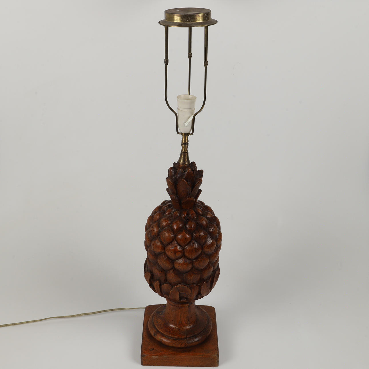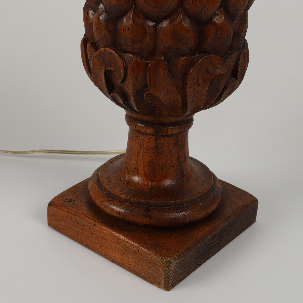 Träskulptur, omgjord till lampfot Höjd 64-81, diameter ca 18 cm.