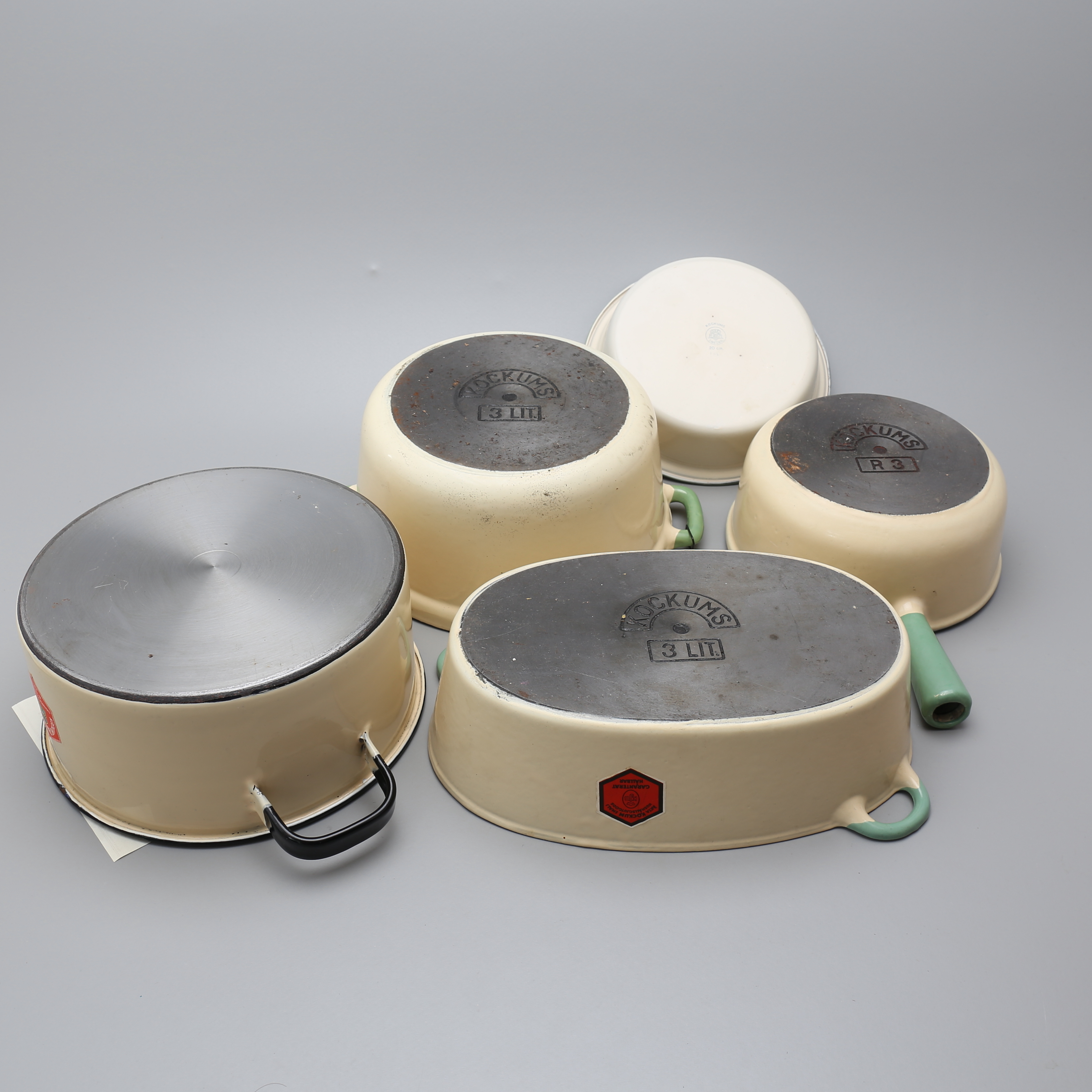 307239. EMALJERADE GRYTOR, 5 st, Kockums.