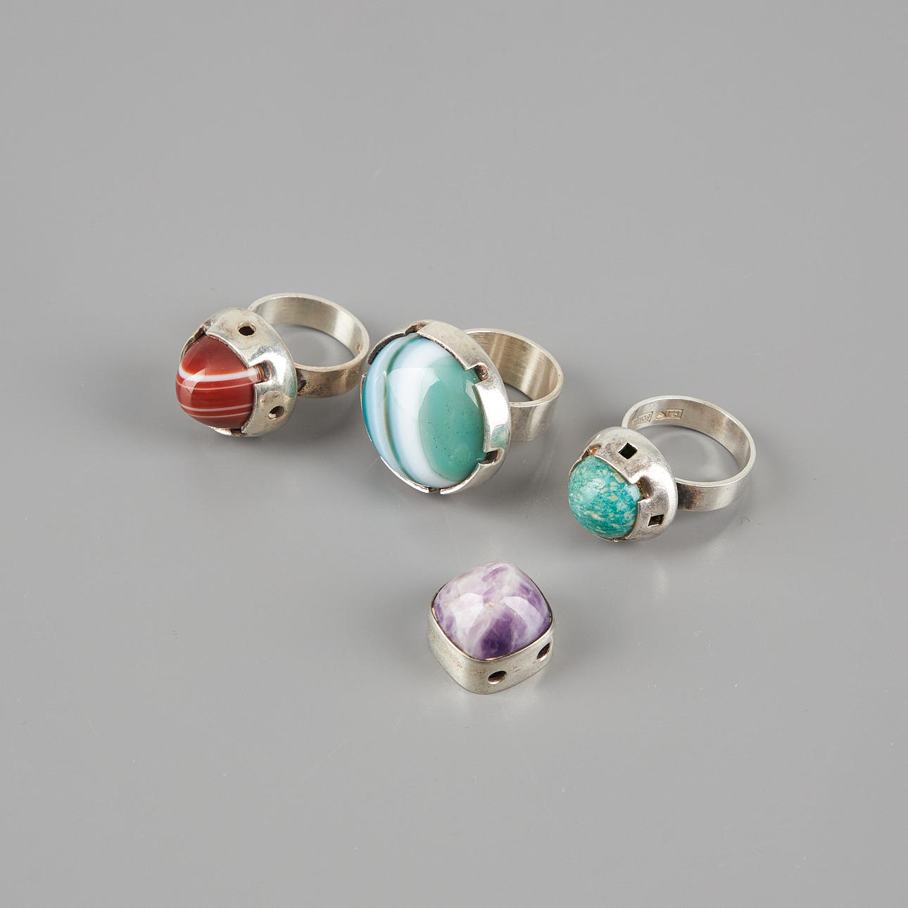3073499. HÄNGEN OCH RINGAR, 11 st, silver, kvarts, agat.