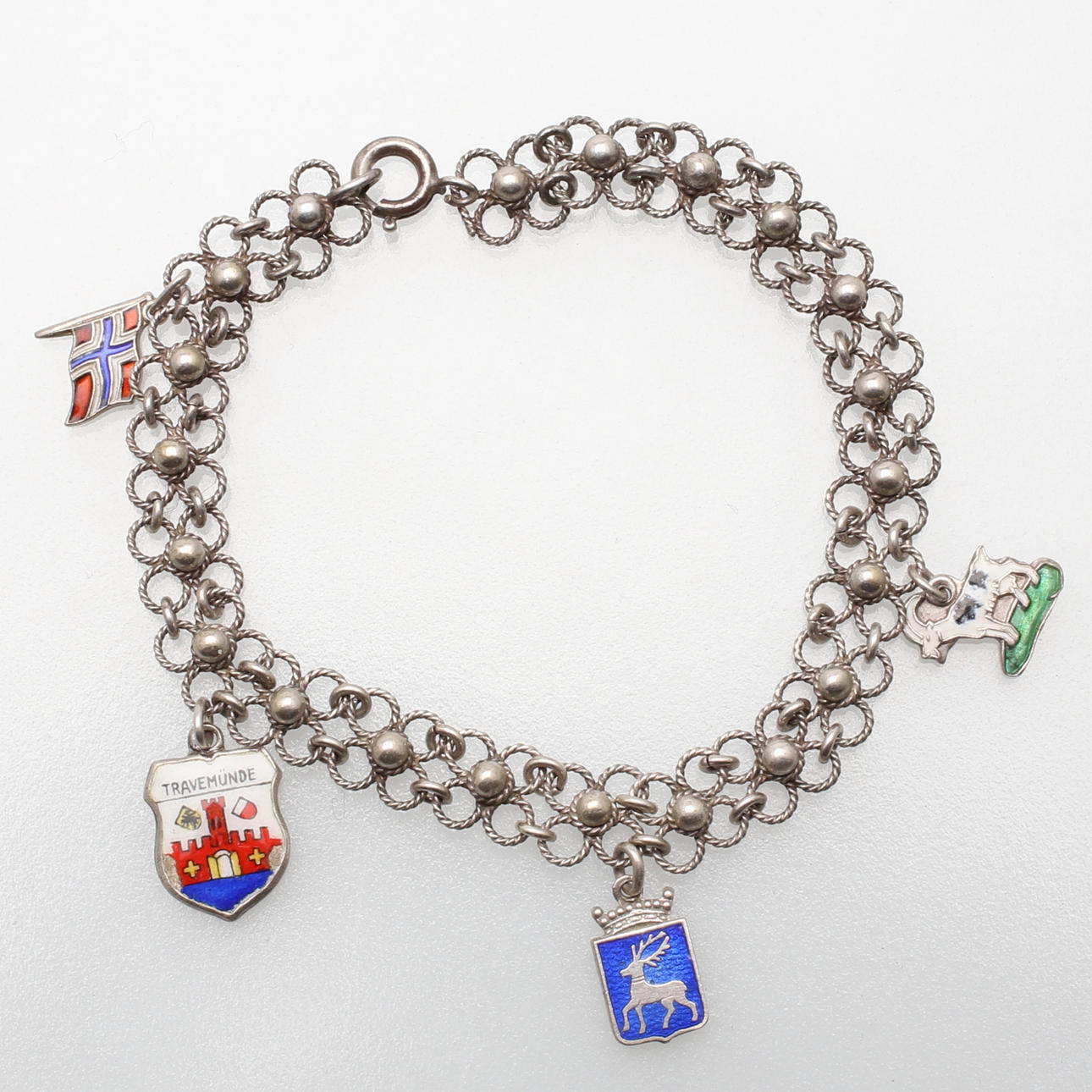 Armband, 830, med flaggor samt stadsemblem, längd ca 8,5 cm.
