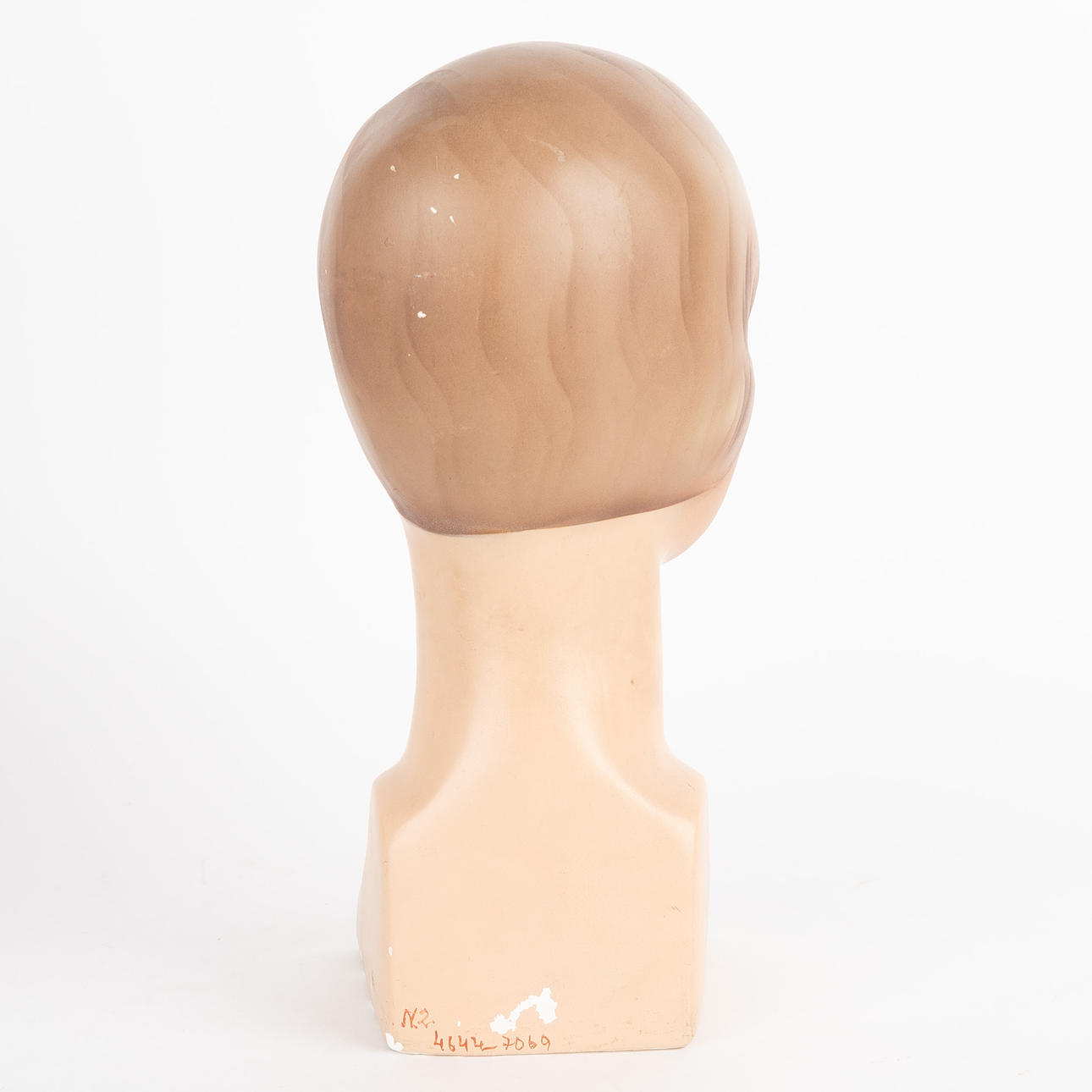 SKYLTHUVUD, med hatt, gips och textil, 1900-tal.